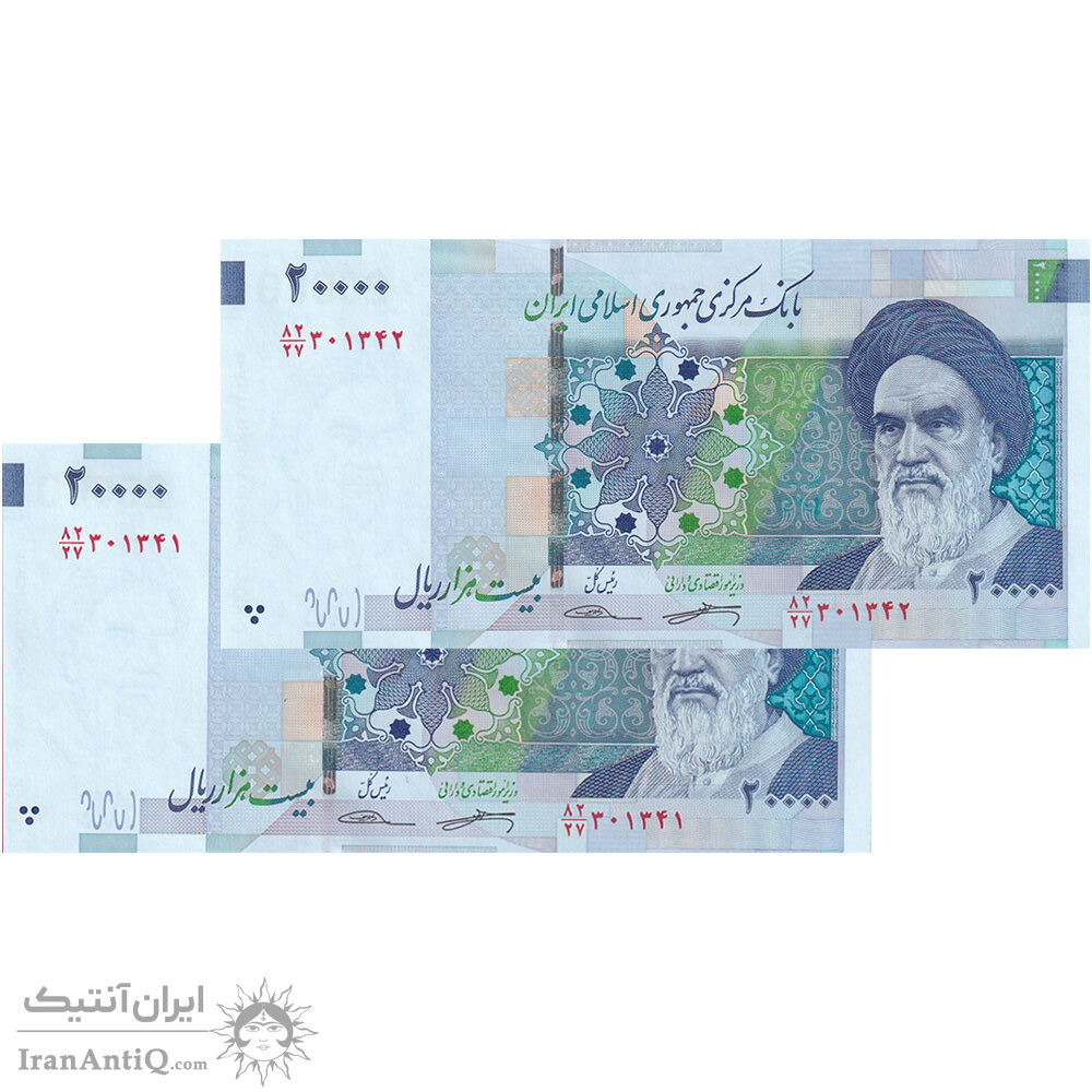 اسکناس 20000 ریال (کرباسیان - سیف) نخ نوع 1 - جفت - UNC64 - جمهوری اسلامی