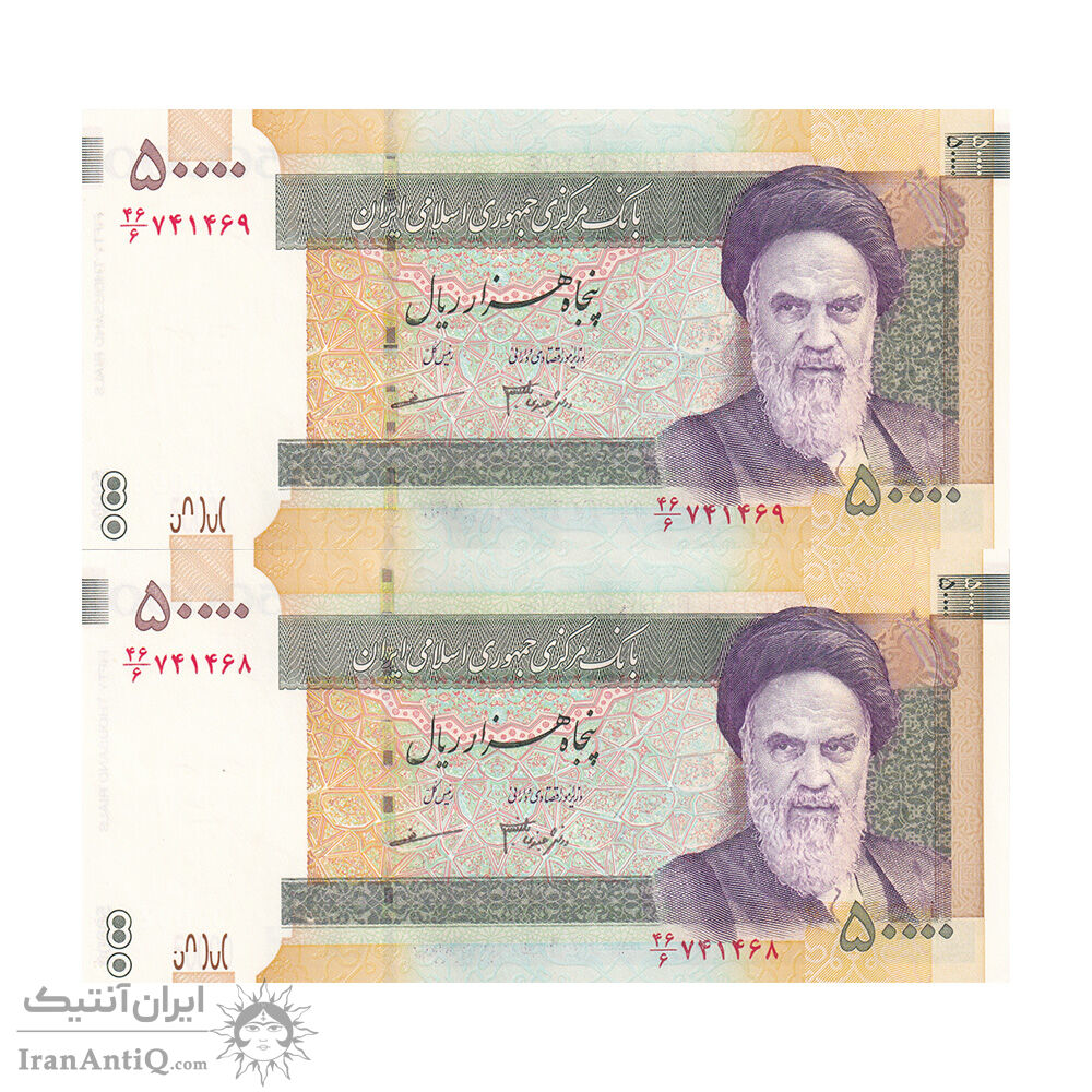 اسکناس 50000 ریال (جعفری - مظاهری) فیلیگران کوچک - جفت - UNC62 - جمهوری اسلامی
