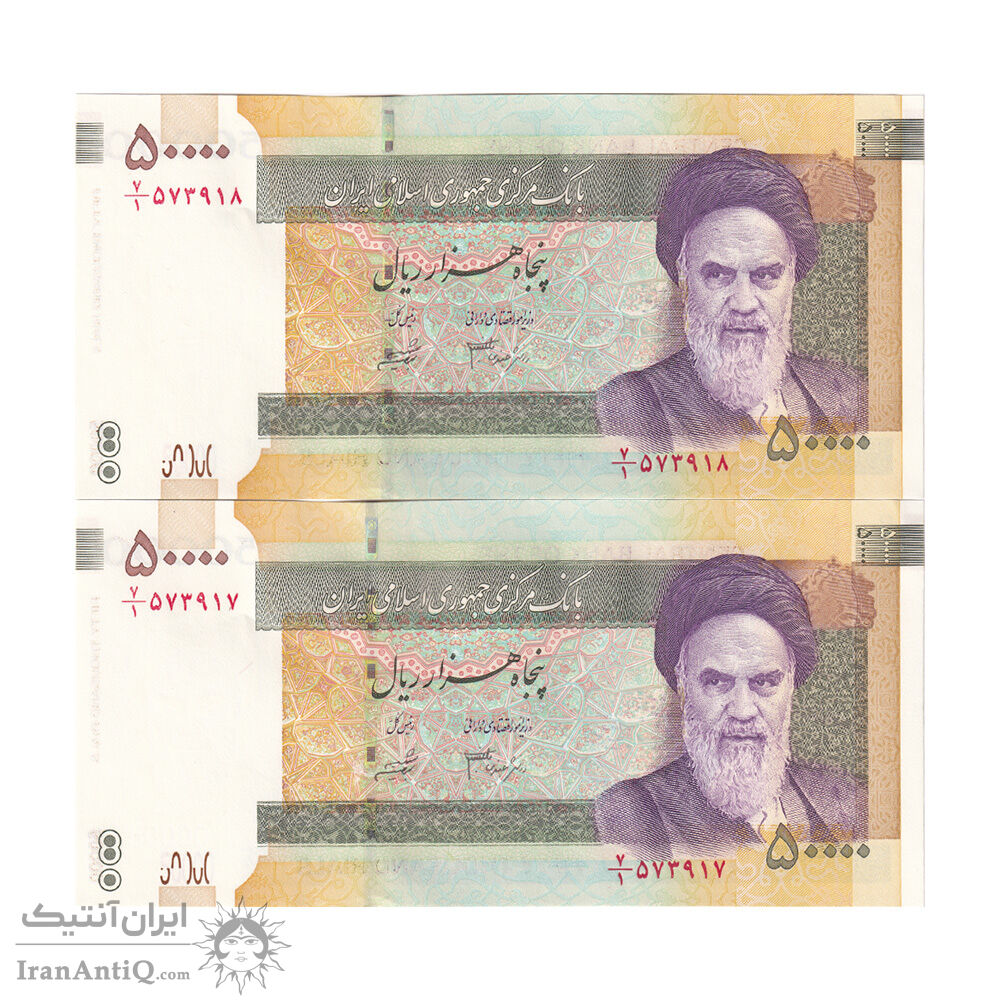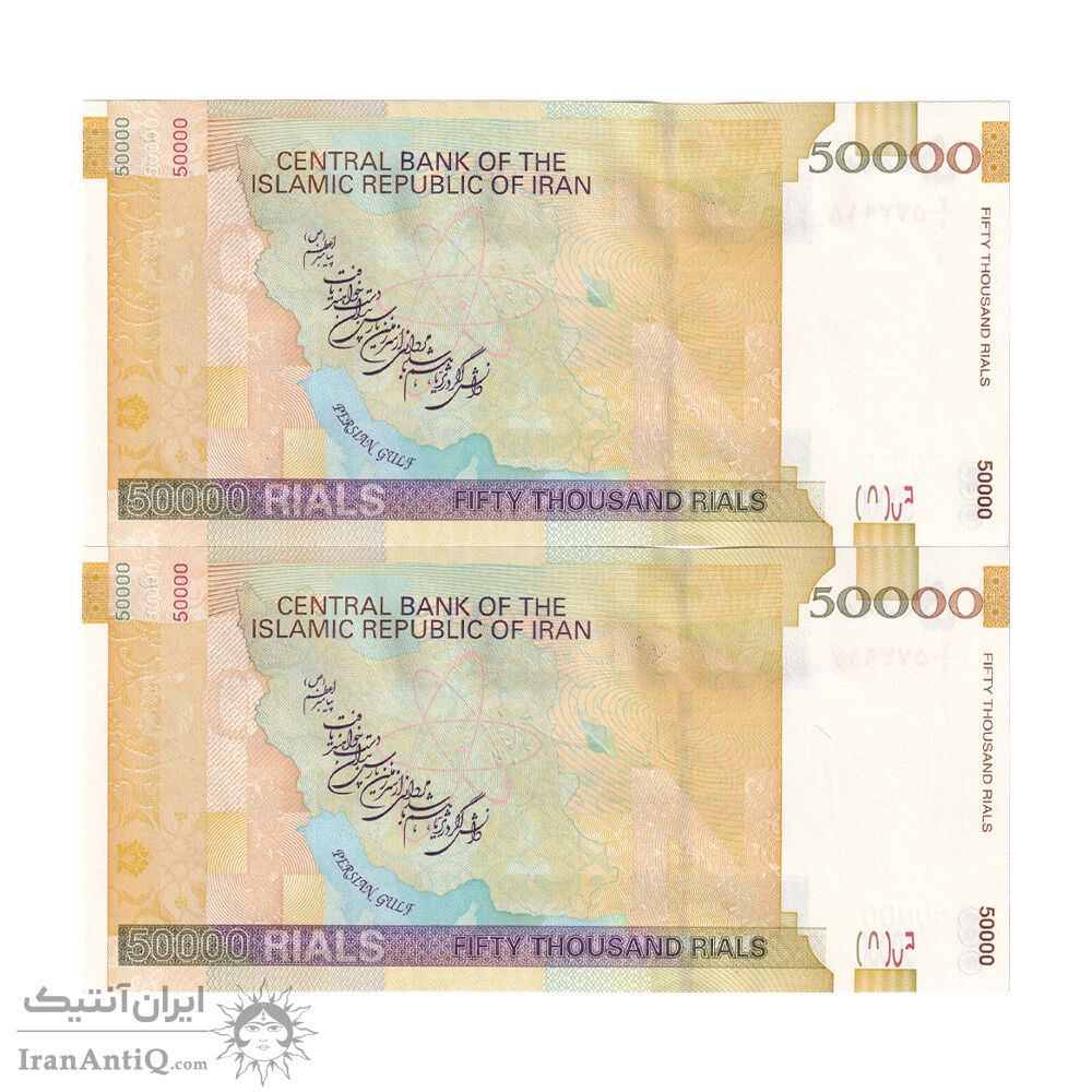 اسکناس 50000 ریال (جعفری - شیبانی) فیلیگران 50000 بزرگ - جفت - UNC62 - جمهوری اسلامی
