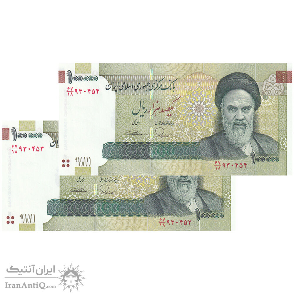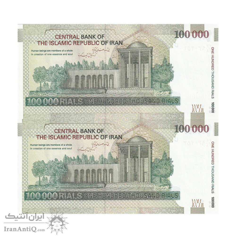 اسکناس 100000 ریال (طیب نیا - سیف) نخ نوع 2 - جفت - UNC64 - جمهوری اسلامی