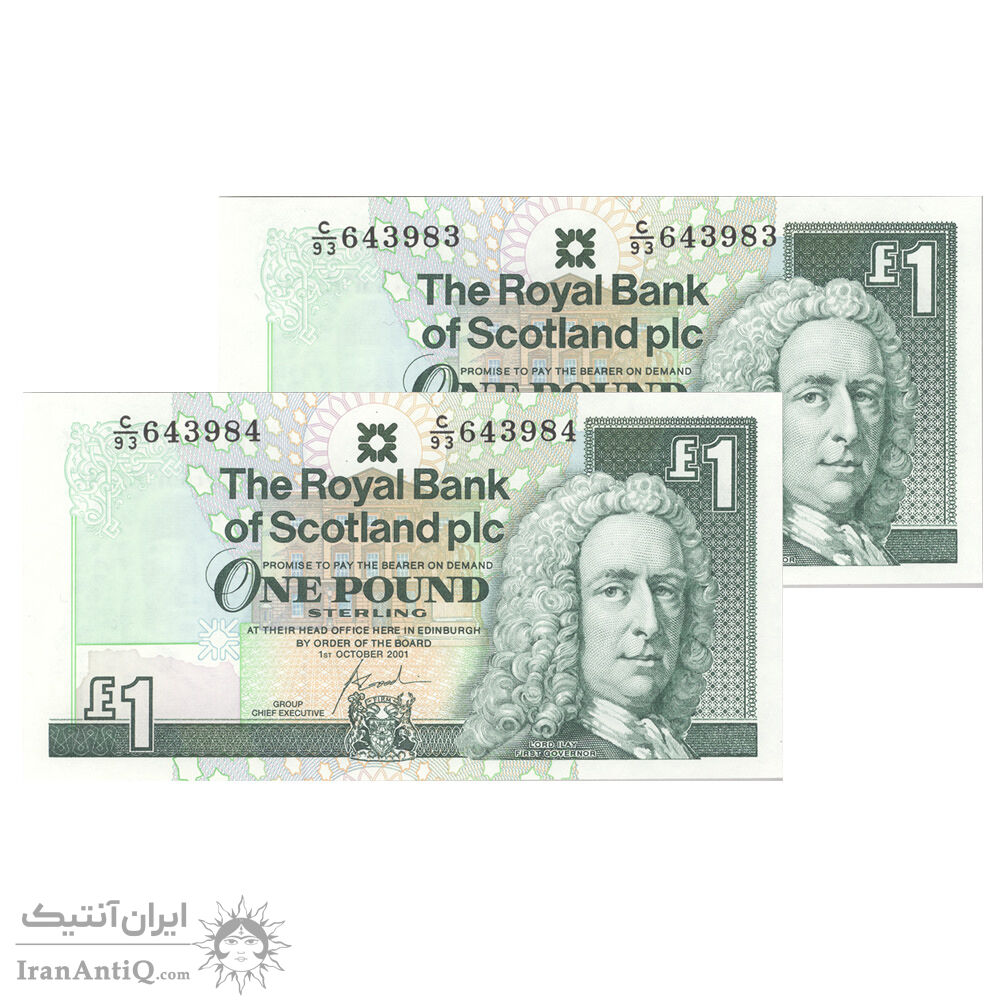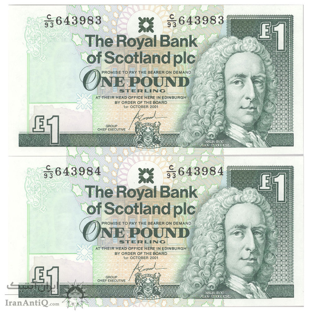 اسکناس 1 پوند 2001 الیزابت دوم - جفت - UNC65 - اسکاتلند