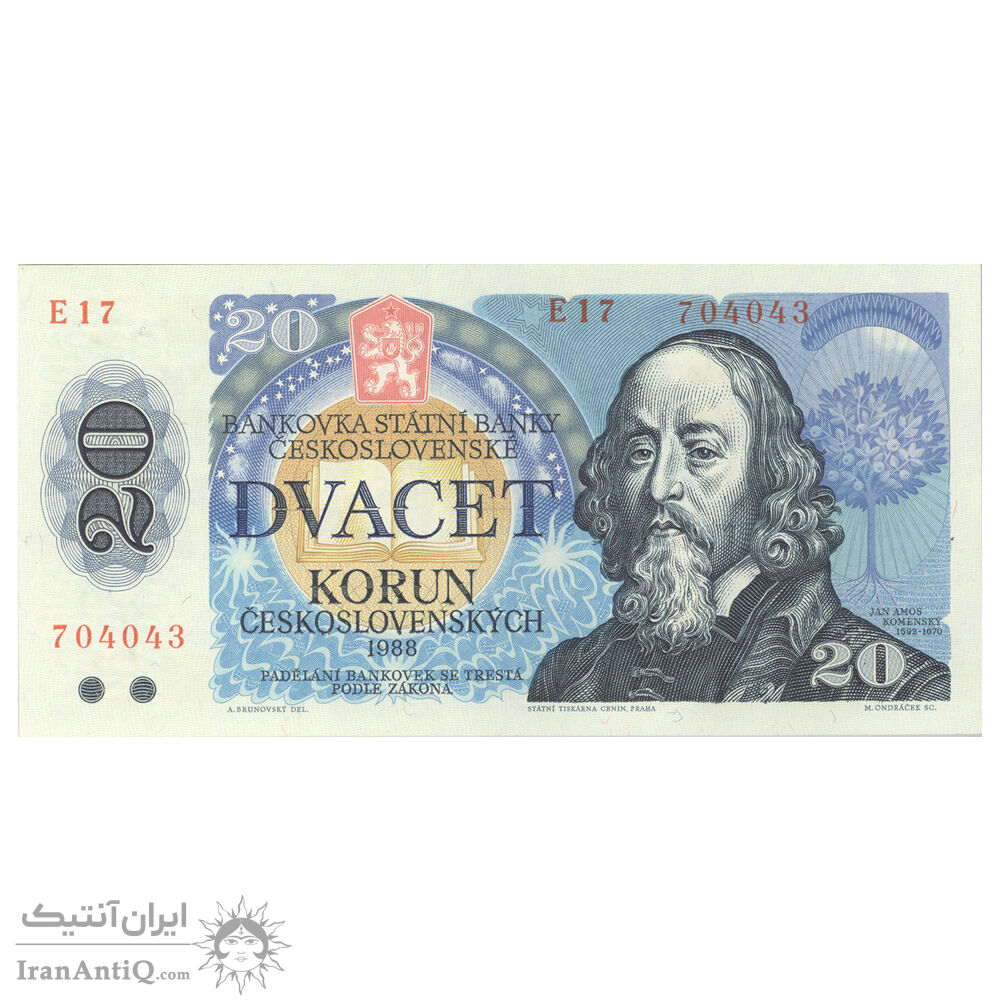 اسکناس 20 کرون 1988 جمهوری سوسیالیستی - تک - UNC64 - چکسلواکی