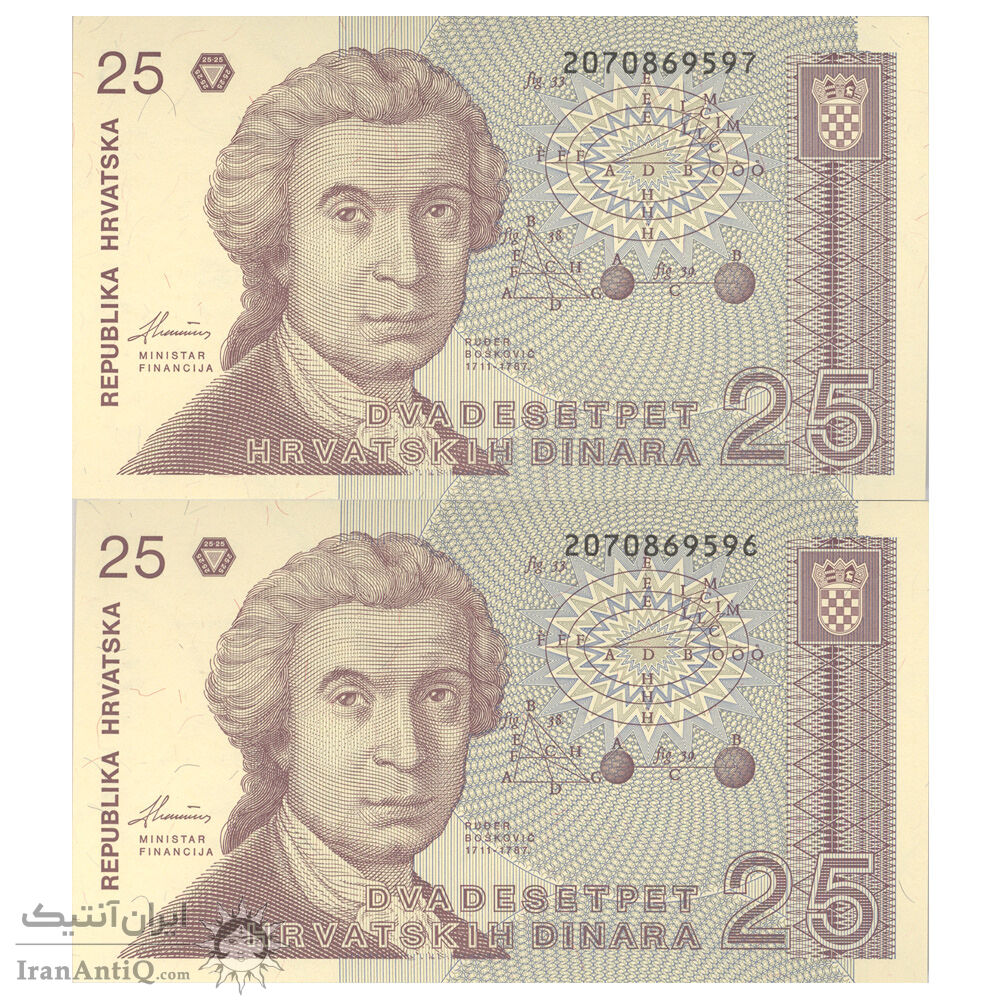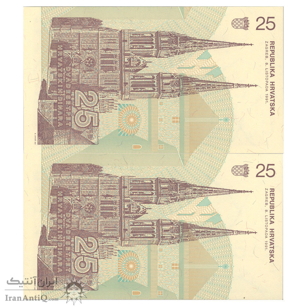 اسکناس 25 دینار 1991 جمهوری - جفت - UNC65 - کرواسی