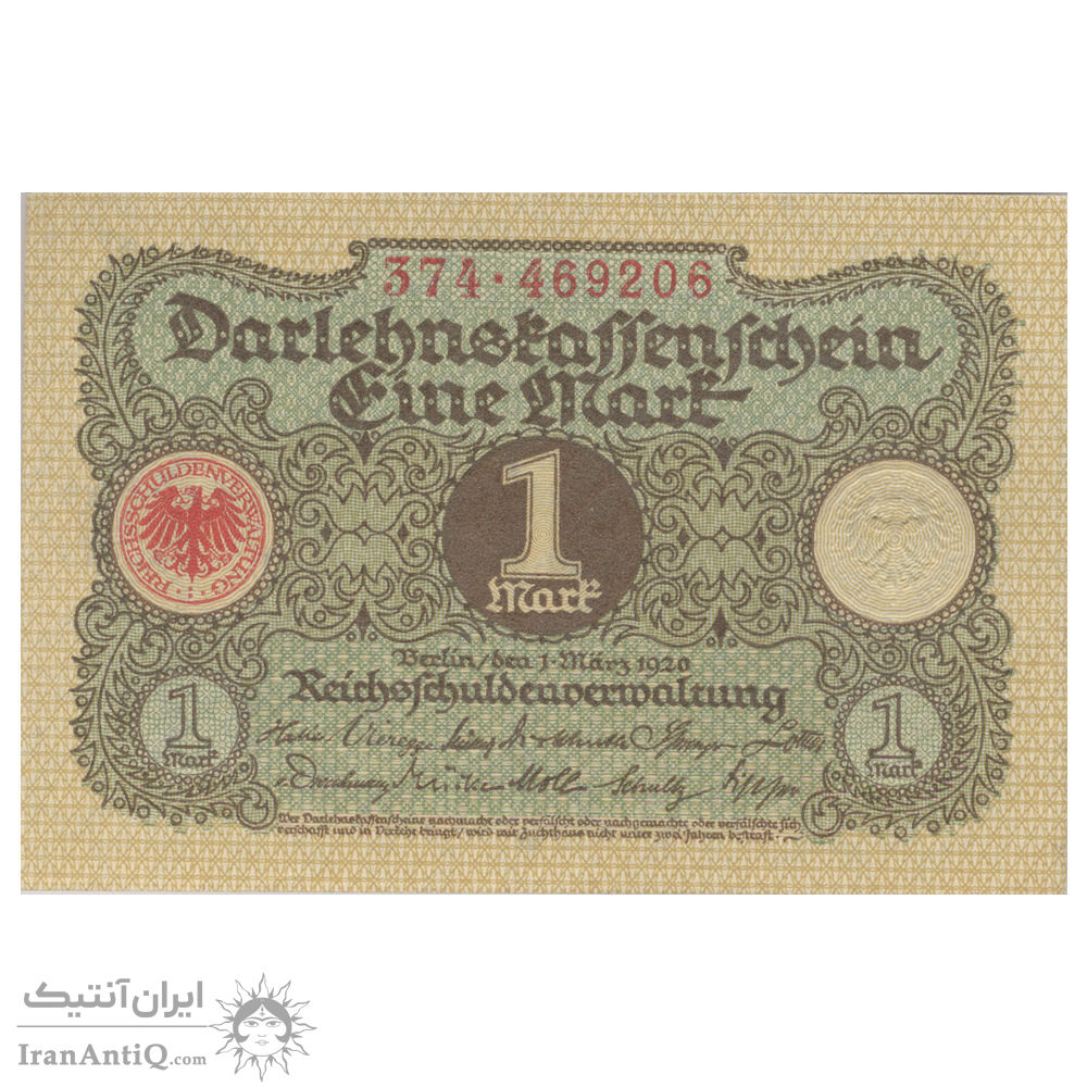 اسکناس 1 مارک 1920 جمهوری وایمار - تک - UNC64 - آلمان