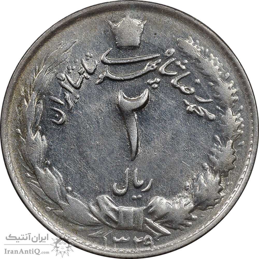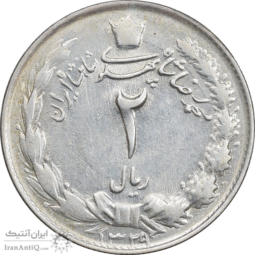 سکه 2 ریال 1329 نقره - MS62 - محمد رضا شاه