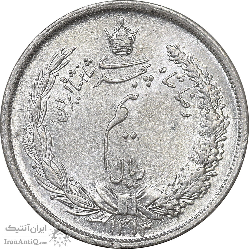 سکه نیم ریال 1313 - 3 تاریخ کوچک - MS63 - رضا شاه