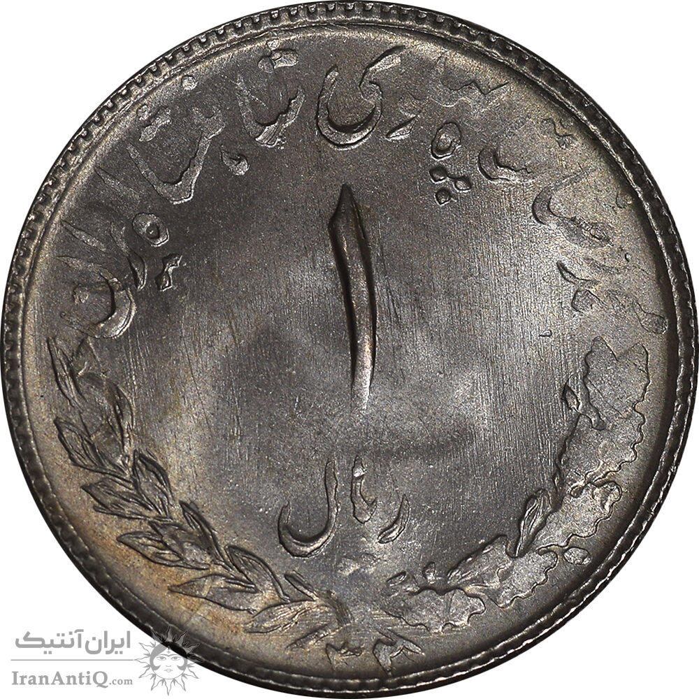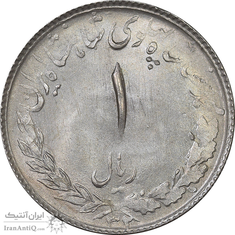 Iran 1 rial 1332 coin - large written - MS62 - mohammad reza shah