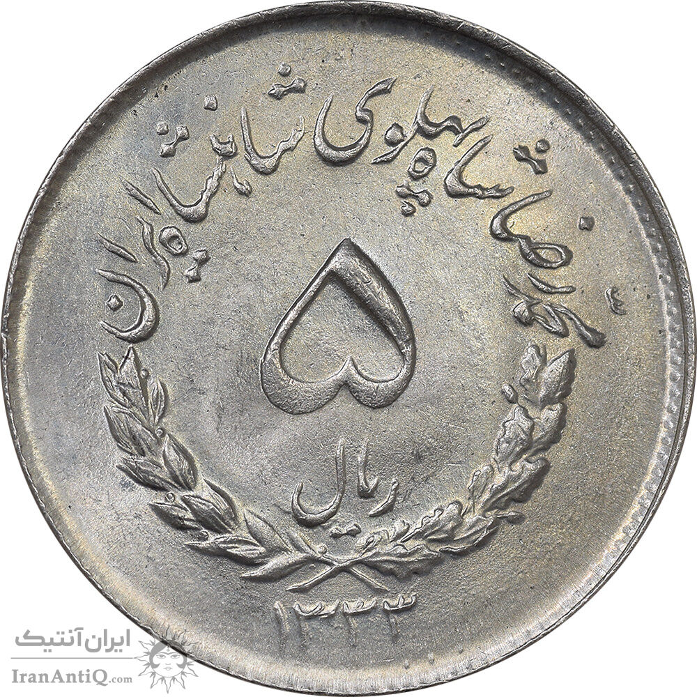 Iran 5 rials 1333 coin - MS63 - mohammad reza shah