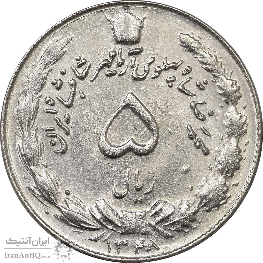 سکه 5 ریال 1348 آریامهر - MS64 - محمد رضا شاه