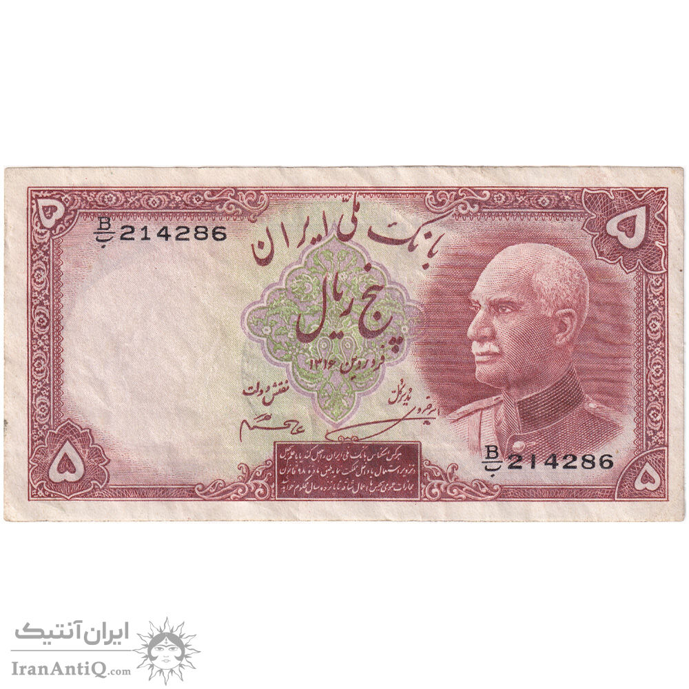 reza shah 5 rials iran banknote - EF45
