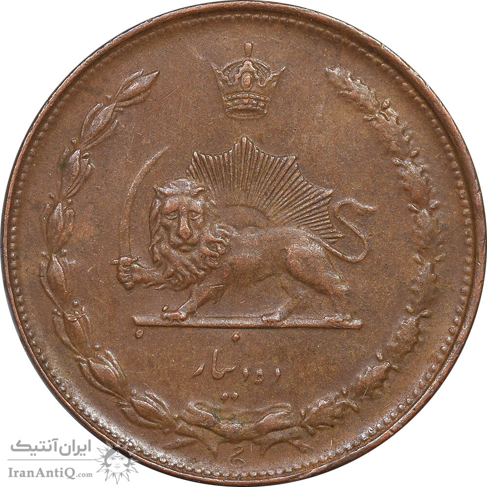 سکه 10 دینار 1314 مس - AU55 - رضا شاه