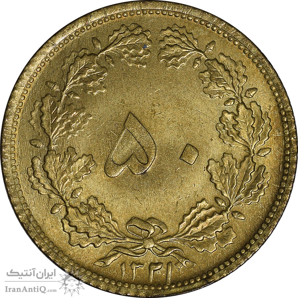 سکه 50 دینار 1321 برنز - MS62 - محمد رضا شاه