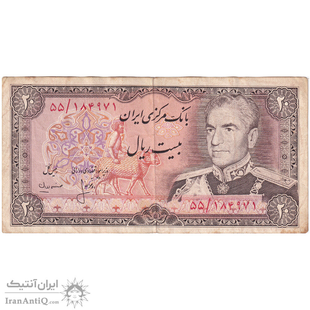 اسکناس 20 ریال (انصاری - مهران) ریال باز - تک - EF45 - محمد رضا شاه