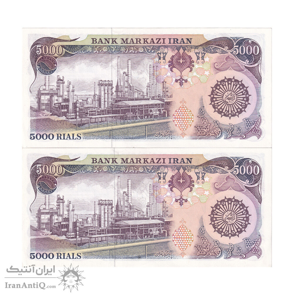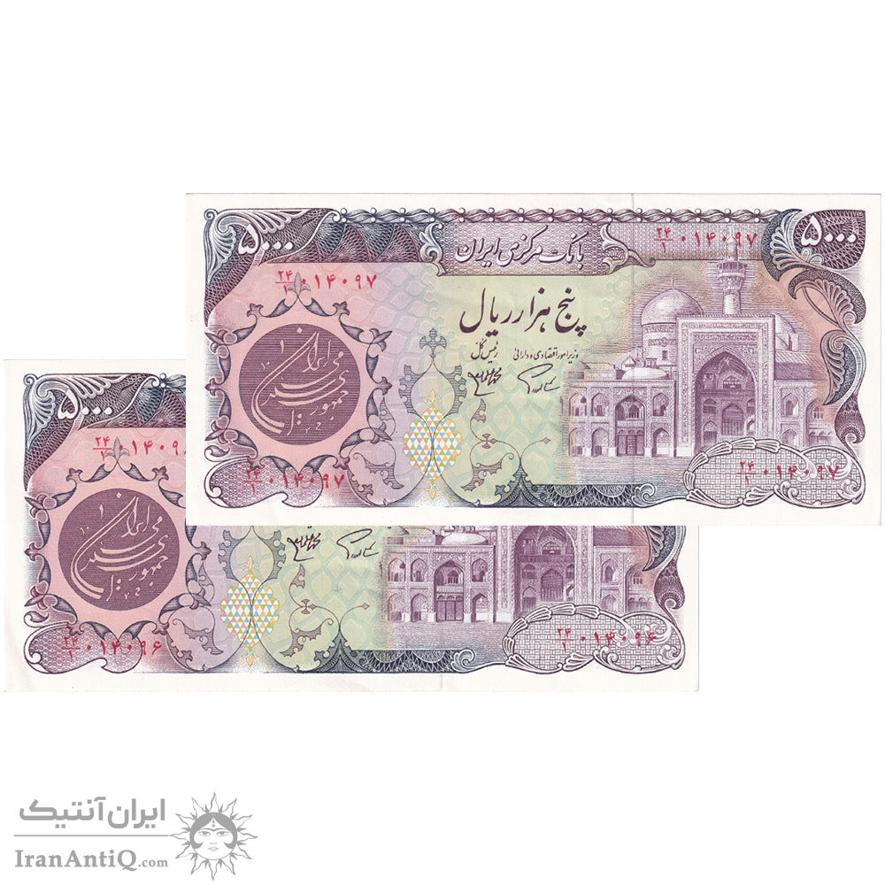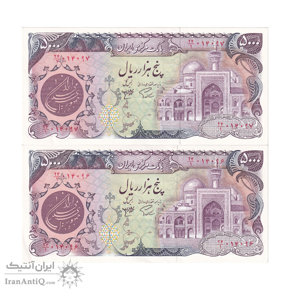 اسکناس 5000 ریال (اردلان - مولوی) بدون نخ - جفت - UNC60 - جمهوری اسلامی