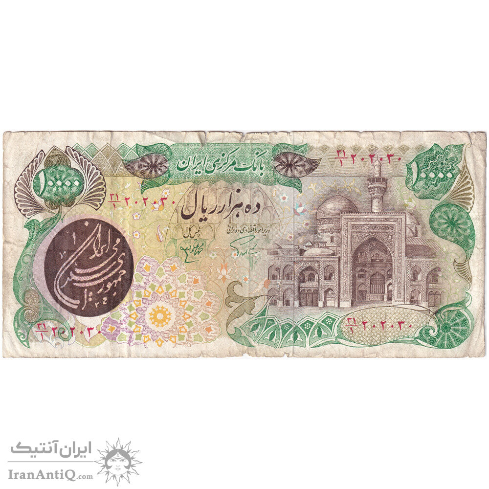 اسکناس 10000 ریال (اردلان - مولوی) فیلیگران بیضی - تک - VF30 - جمهوری اسلامی