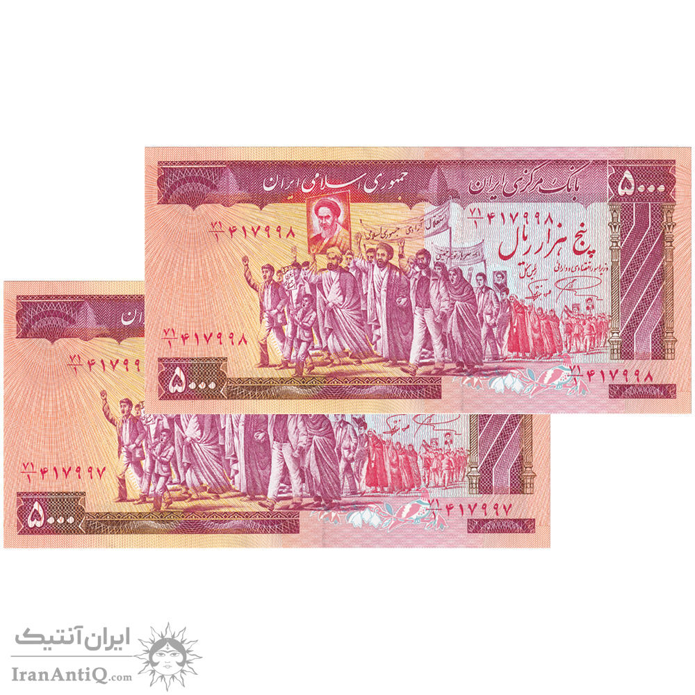 اسکناس 5000 ریال (نمازی - نوربخش) امضاء کوچک - جفت - UNC62 - جمهوری اسلامی