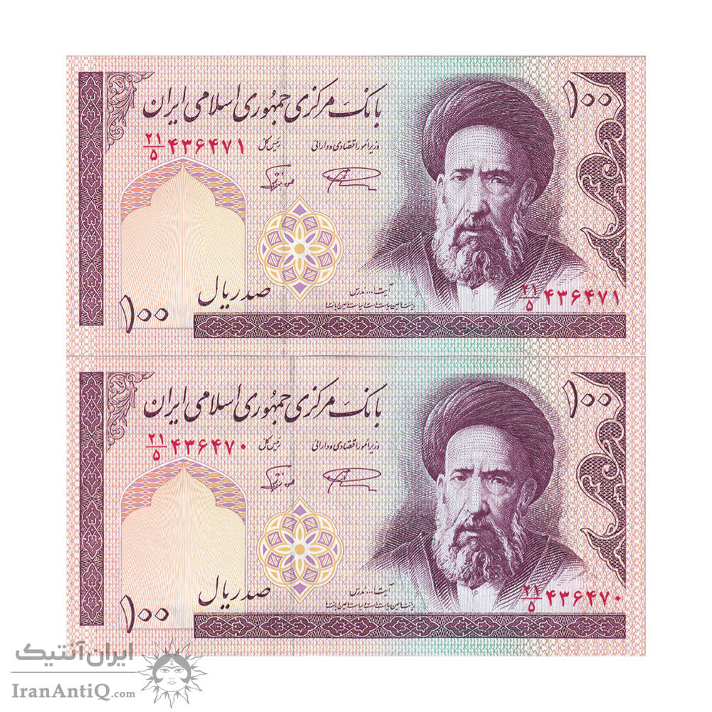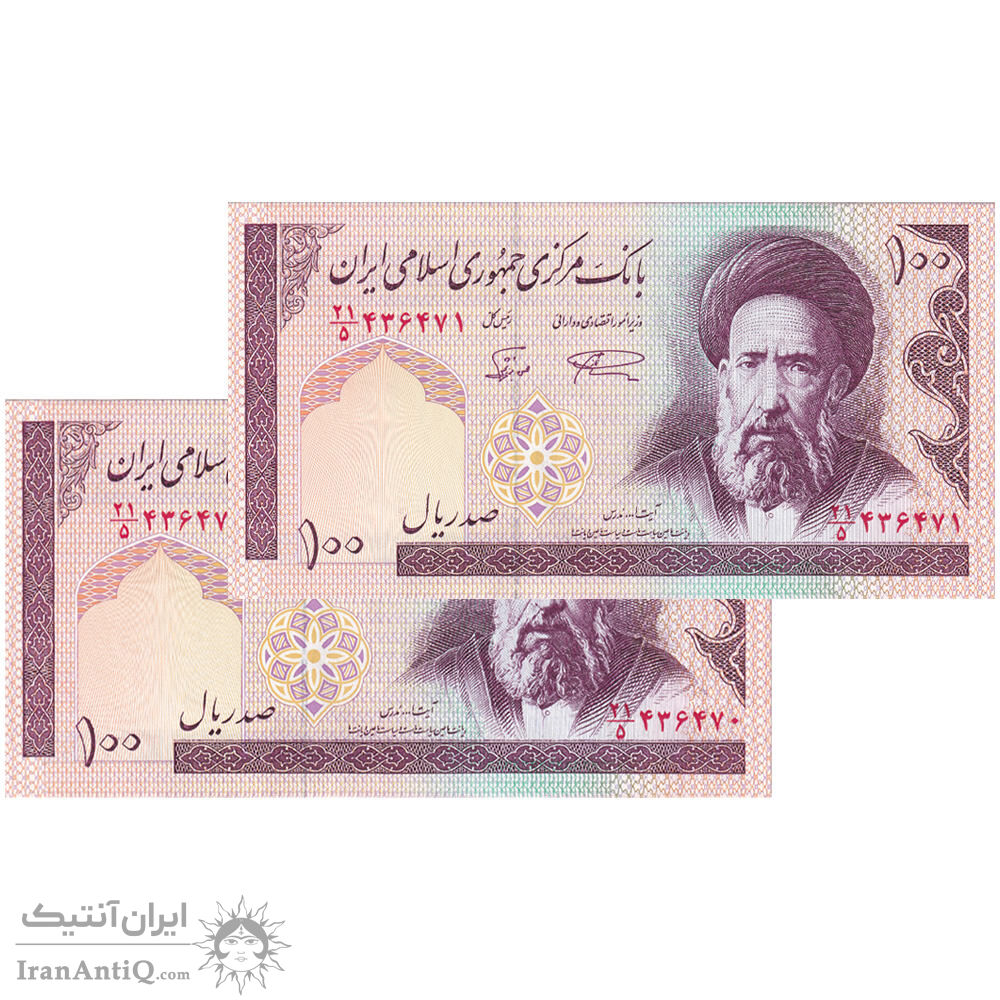 اسکناس 100 ریال (نمازی - نوربخش) شماره بزرگ - فیلیگران امام - جفت - UNC62 - جمهوری اسلامی