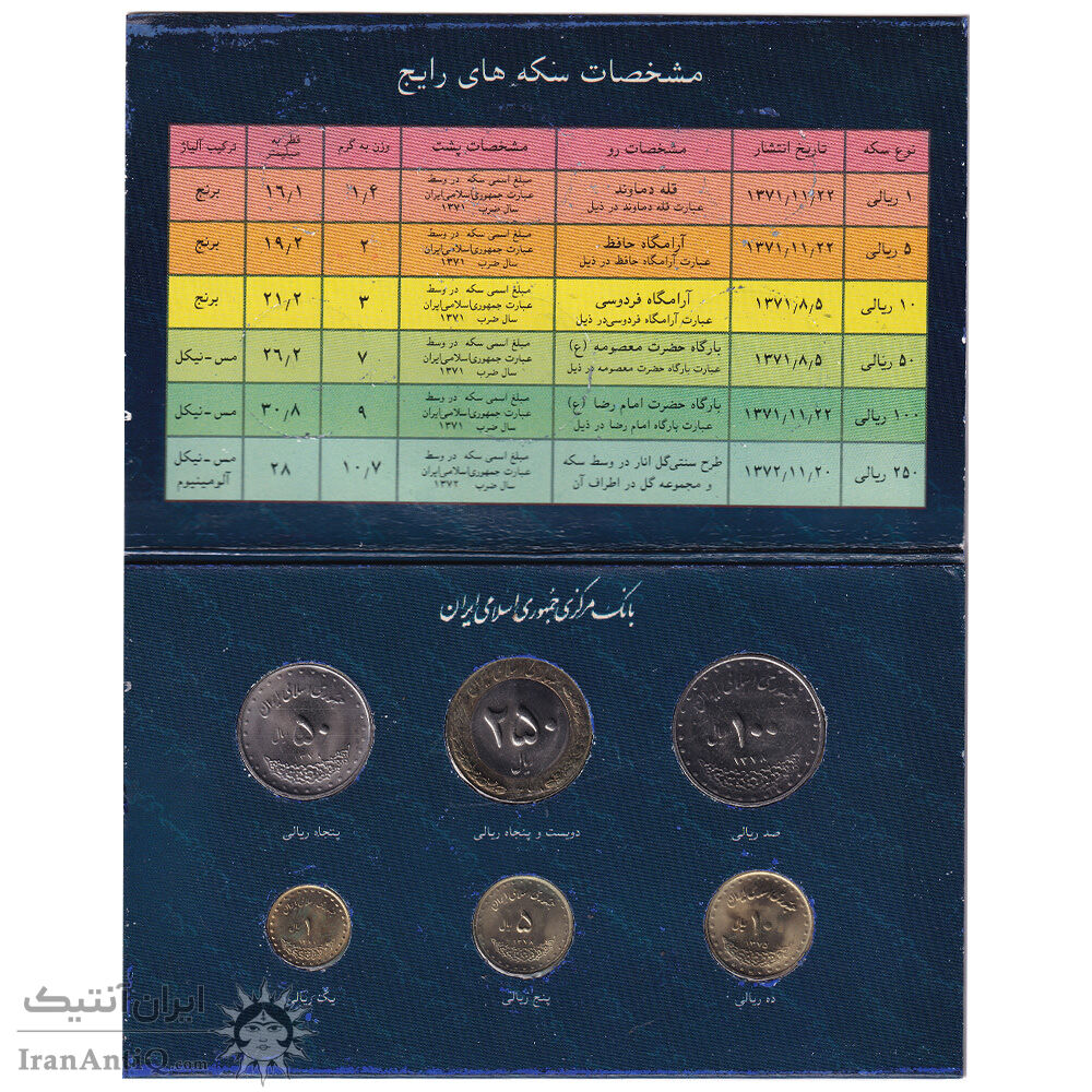 پک سکه های رایج بانک مرکزی (سکه 1 ریال 1371 دماوند) - UNC - جمهوری اسلامی