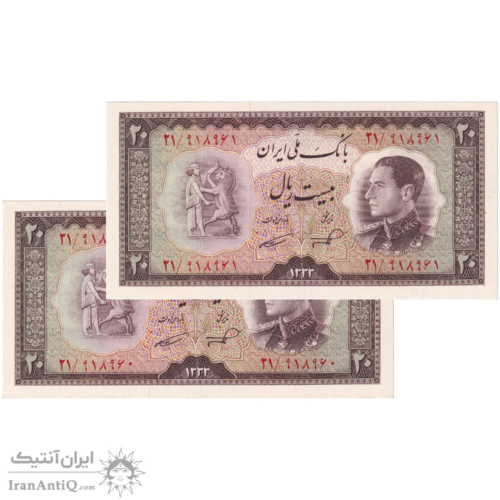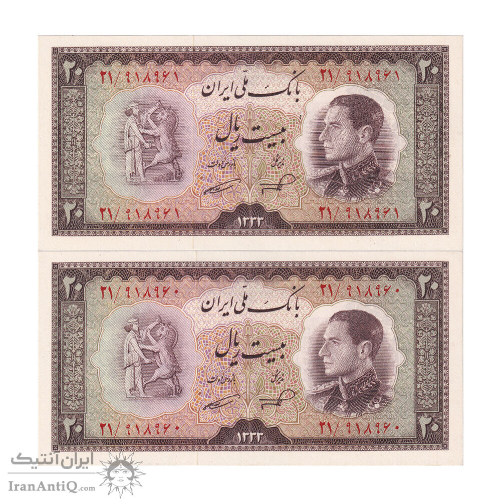 اسکناس 20 ریال 1333 - جفت - UNC64 - محمد رضا شاه