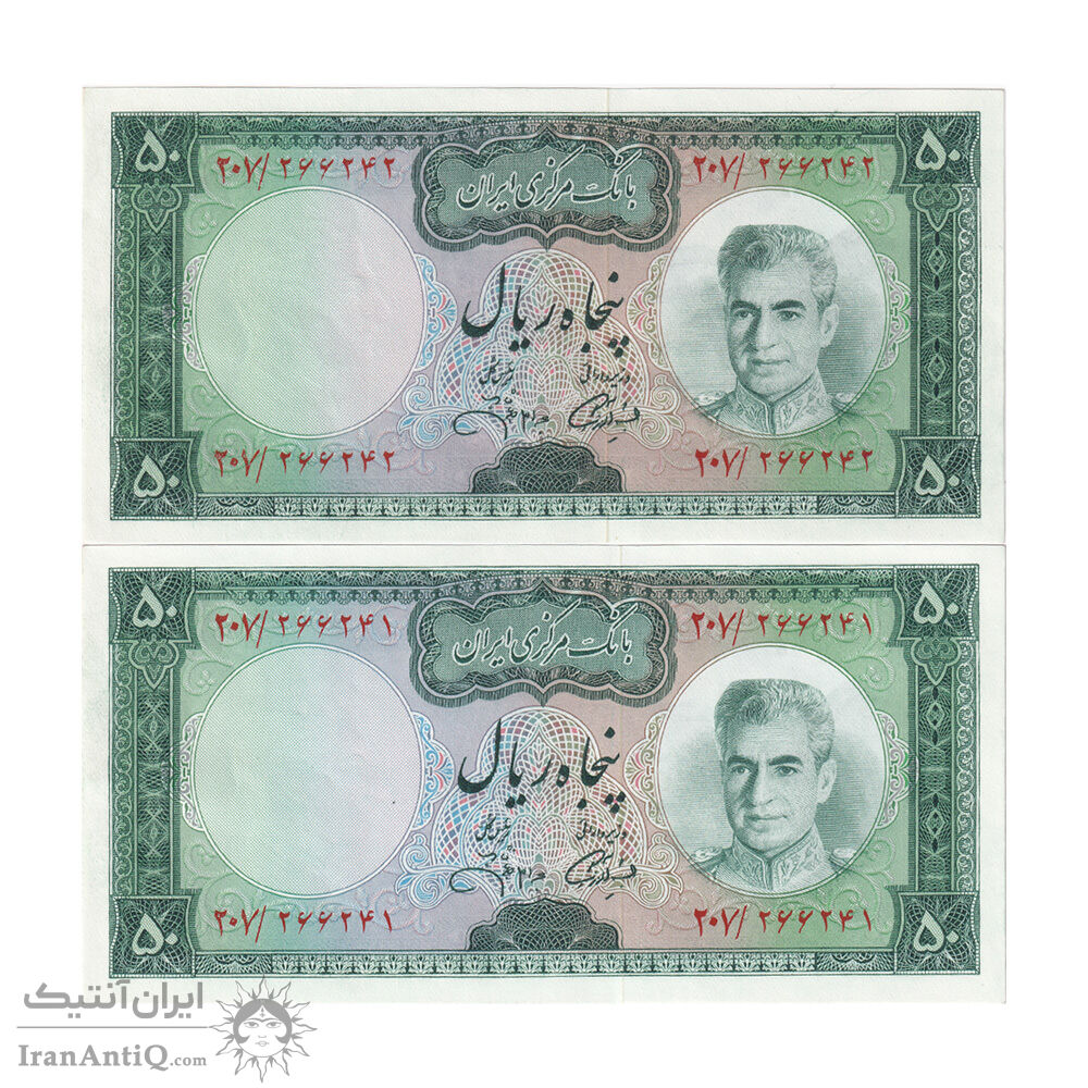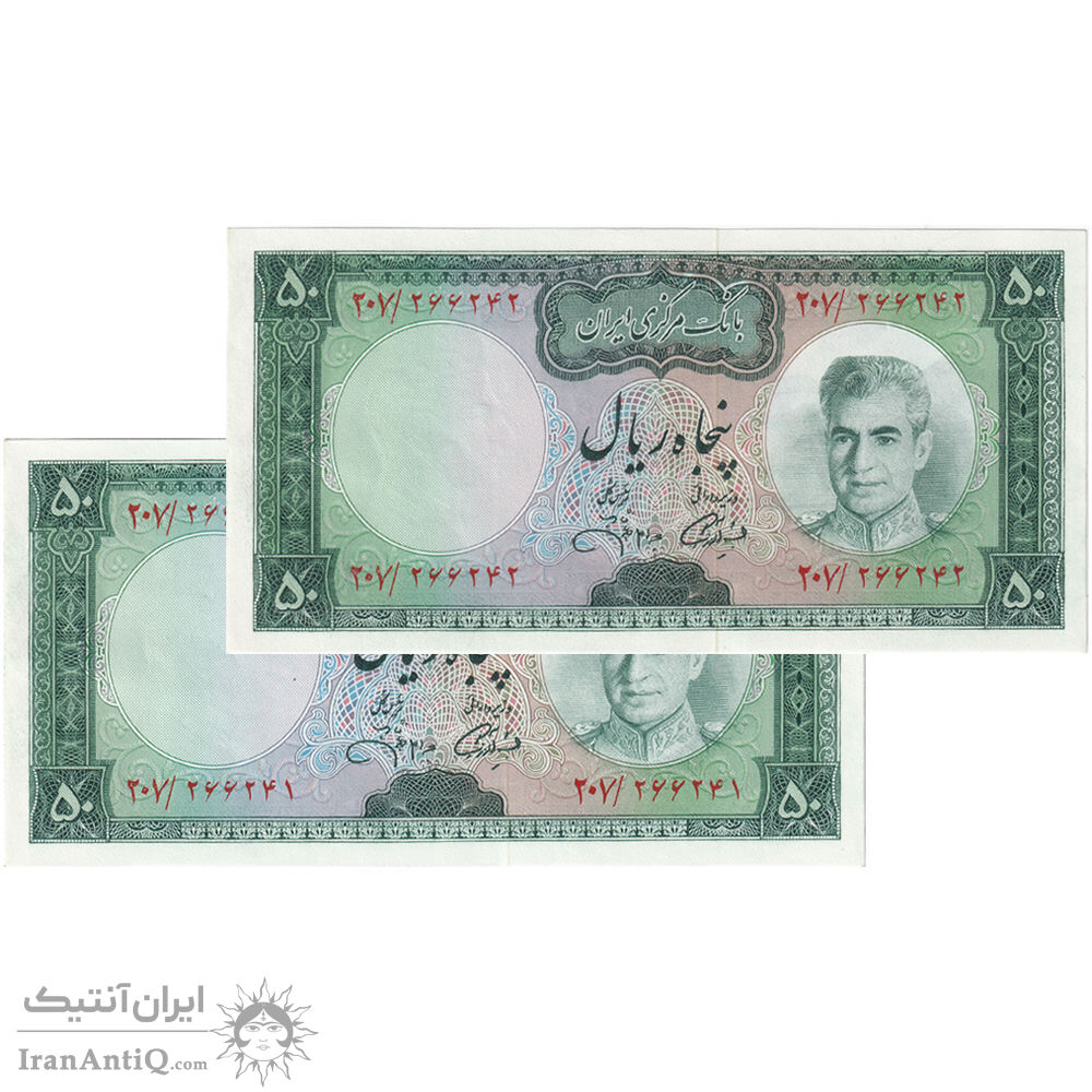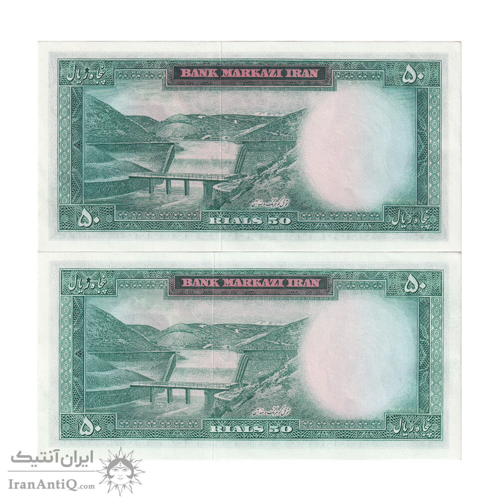 اسکناس 50 ریال (آموزگار - جهانشاهی) - جفت - UNC61 - محمد رضا شاه