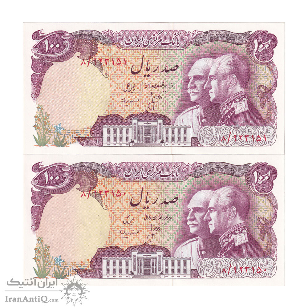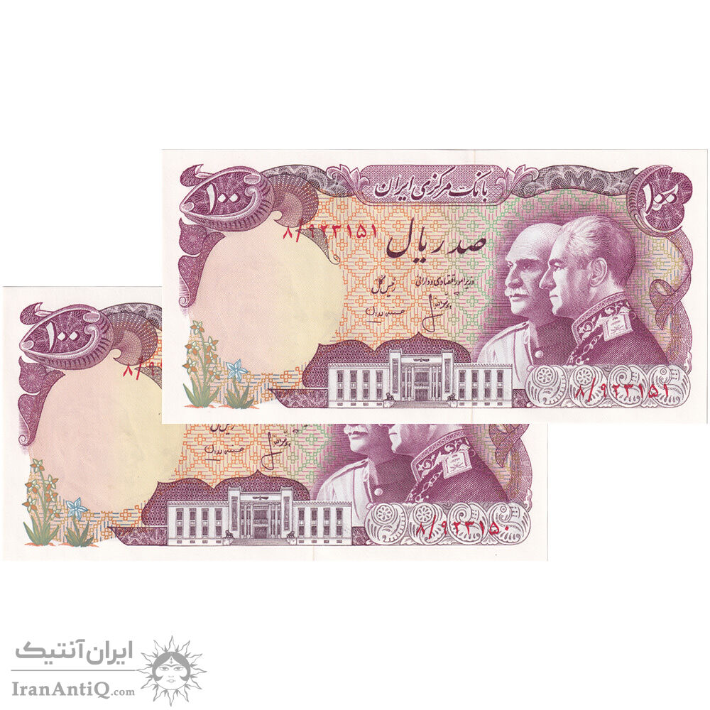 اسکناس 100 ریال پنجاهمین سال - جفت - UNC65 - محمد رضا شاه