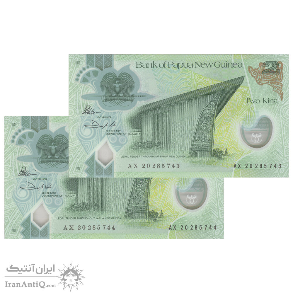 اسکناس 2 کینا 2020 الیزابت دوم - سایز کوچک - جفت - UNC66 - پاپوآ گینه نو