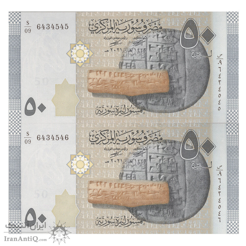 اسکناس 50 لیره 2021 جمهوری عربی - سری شماره سریال کسری - جفت - UNC63 - سوریه