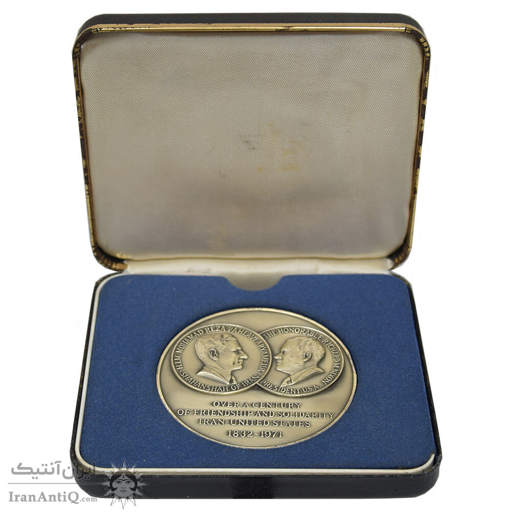 مدال نقره شاه و نیکسون - با جعبه و شناسنامه فابریک - AU - محمد رضا شاه