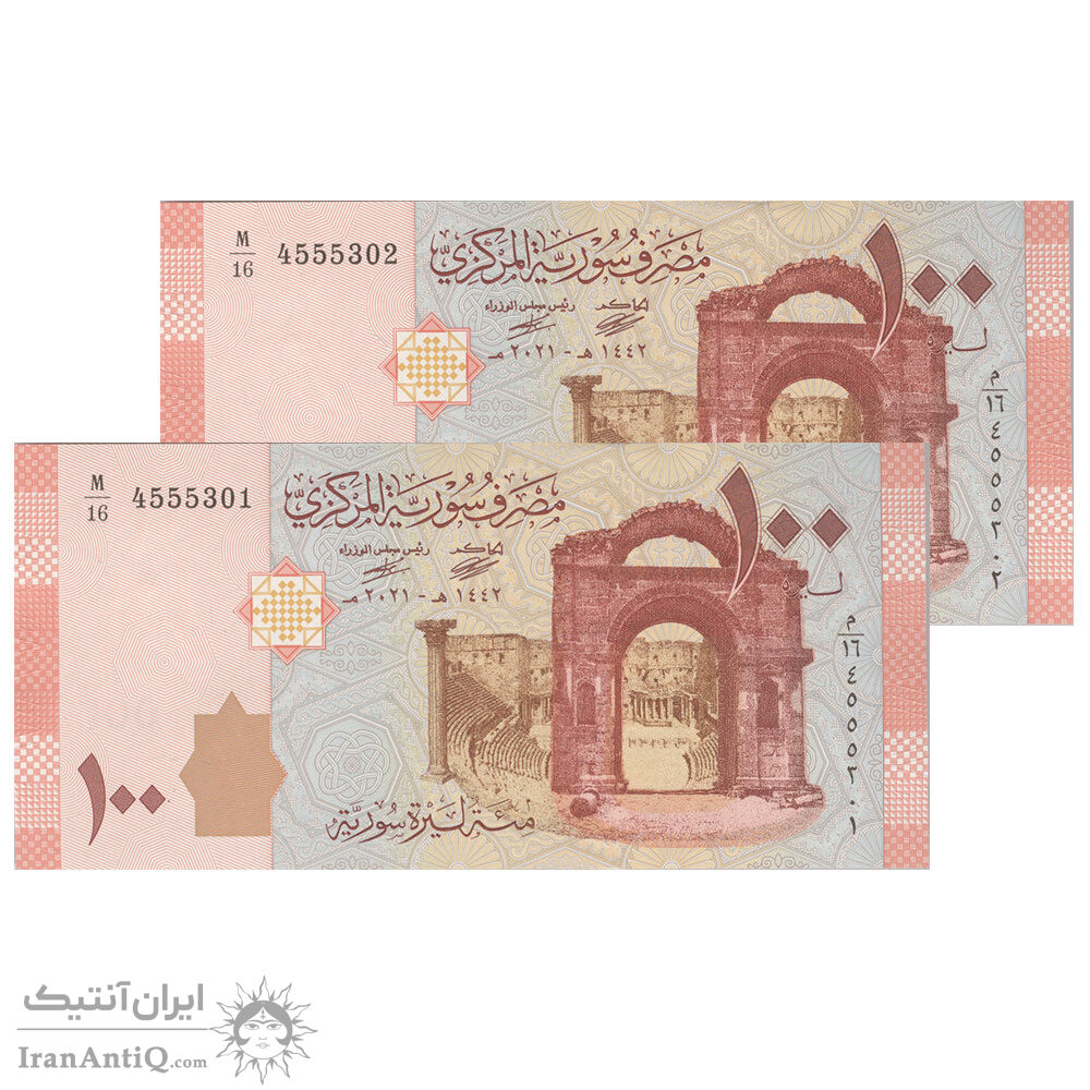 اسکناس 100 لیره 2021 جمهوری عربی - سری شماره سریال کسری - جفت - UNC64 - سوریه