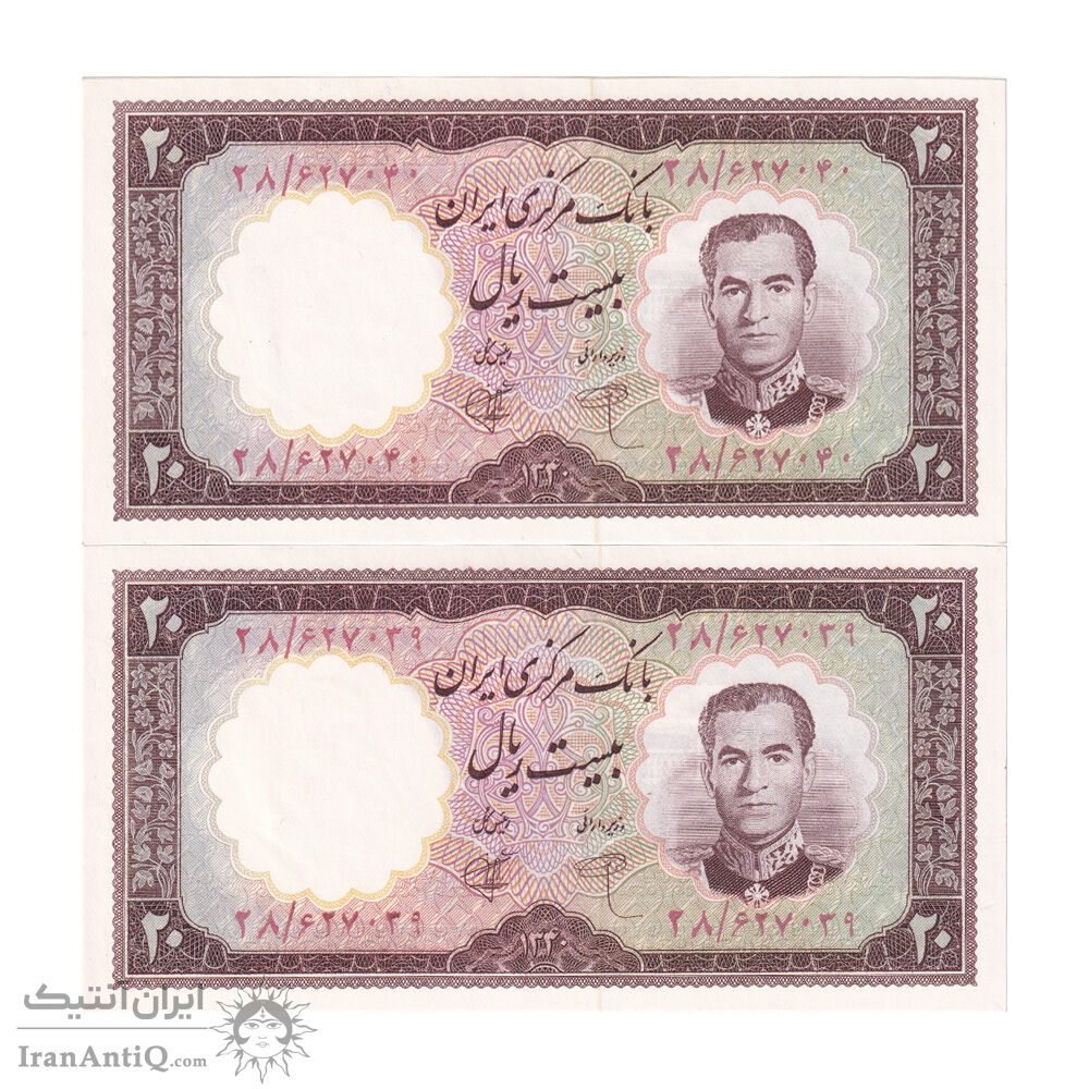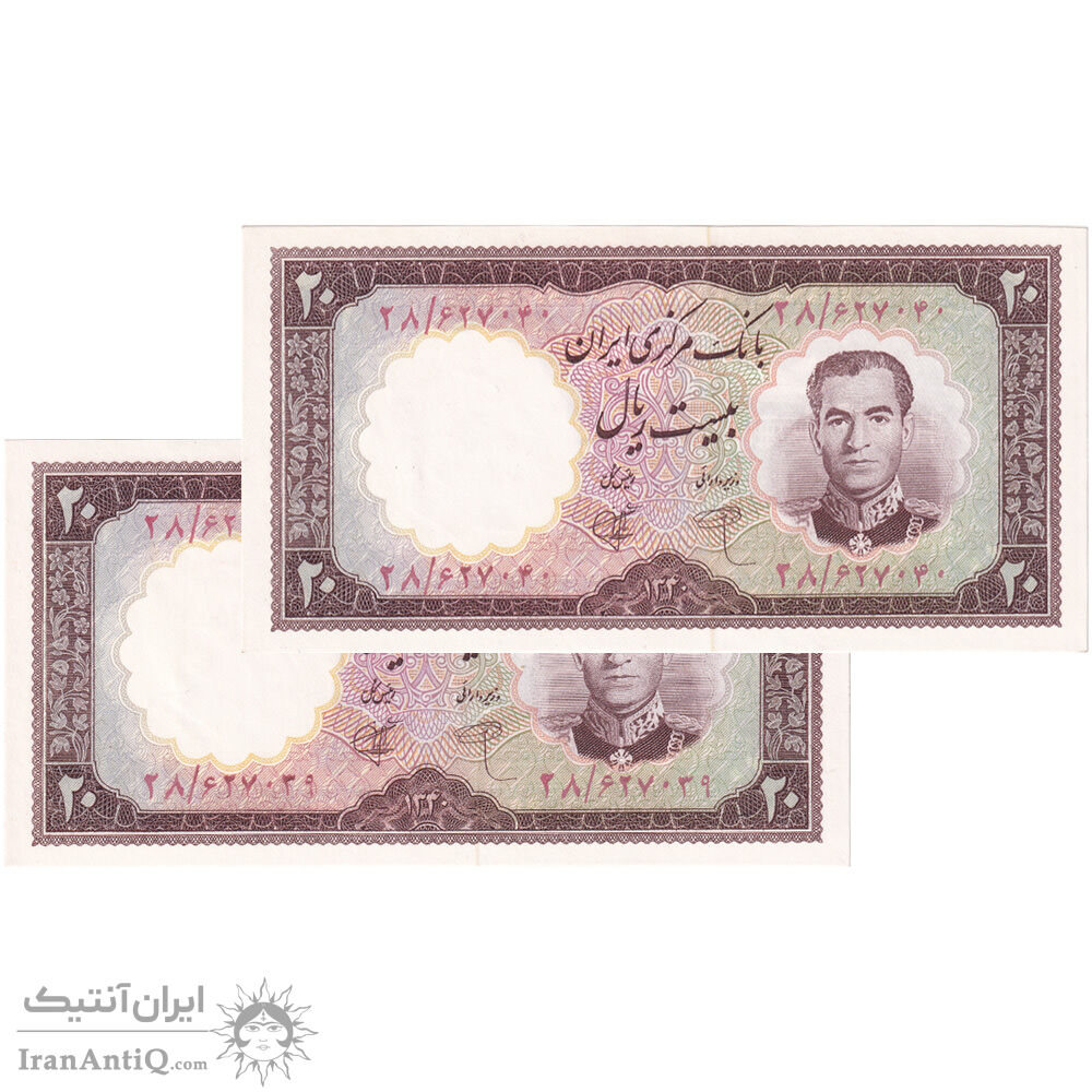 اسکناس 20 ریال 1340 - جفت - UNC64 - محمد رضا شاه