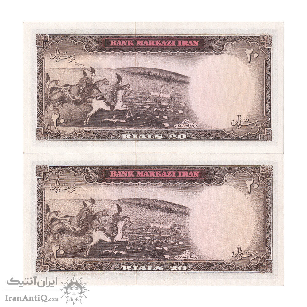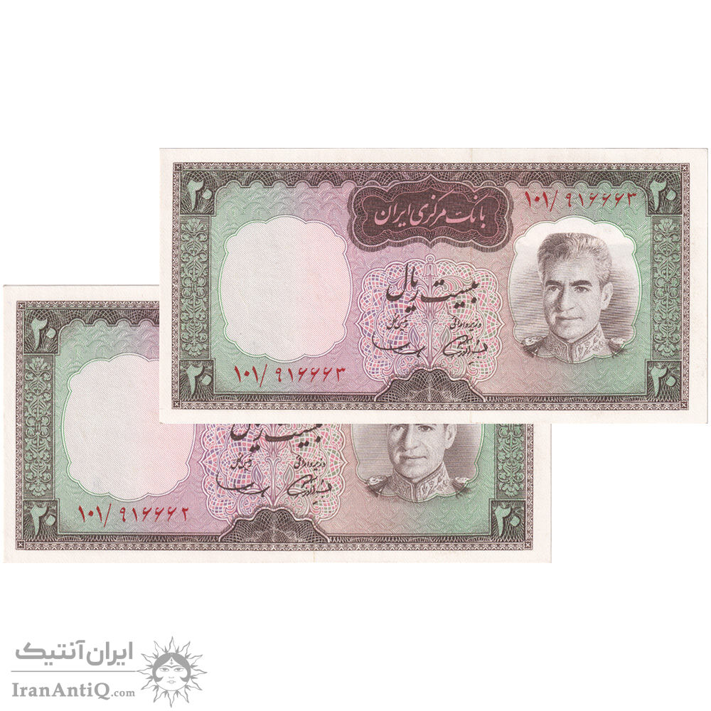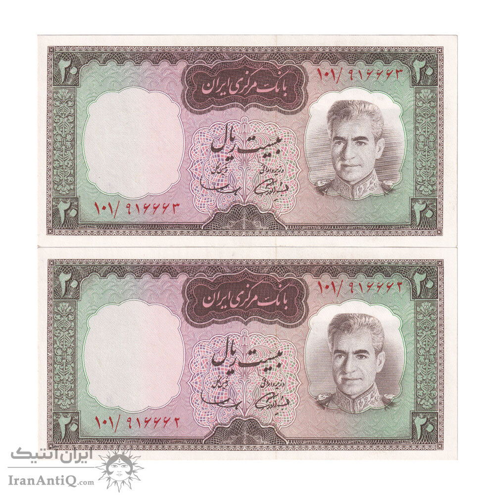 اسکناس 20 ریال (آموزگار - سمیعی) - جفت - UNC62 - محمد رضا شاه