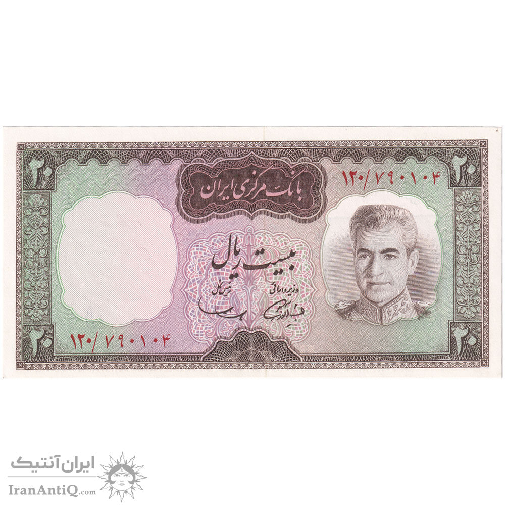 اسکناس 20 ریال (آموزگار - سمیعی) - تک - UNC63 - محمد رضا شاه