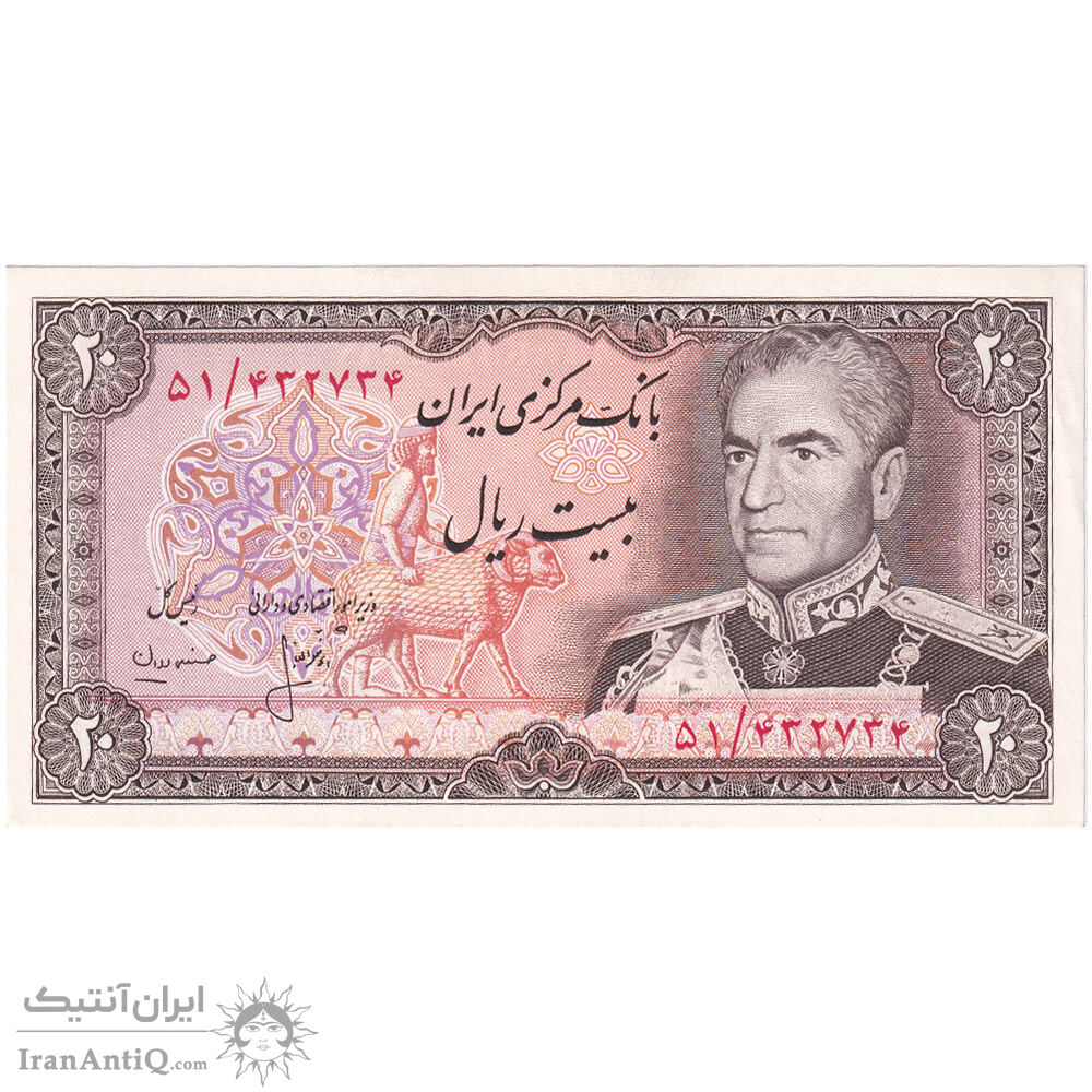 اسکناس 20 ریال (انصاری - مهران) ریال باز - تک - UNC63 - محمد رضا شاه