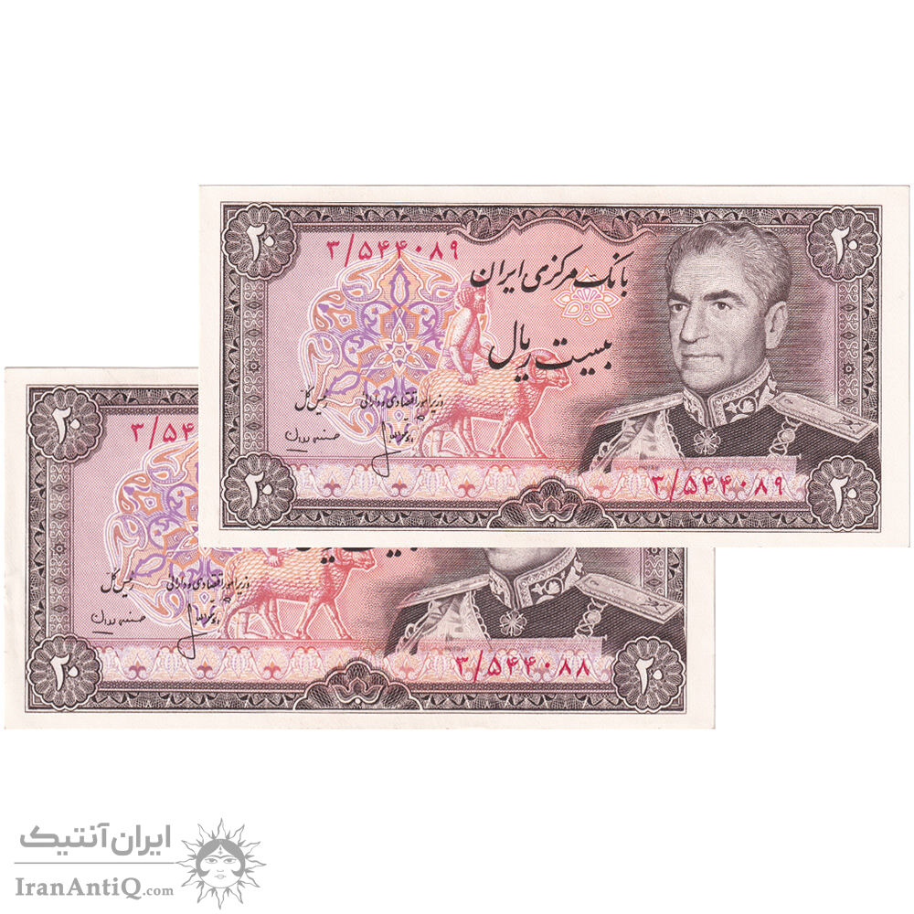 اسکناس 20 ریال (انصاری - مهران) ریال بسته - جفت - UNC62 - محمد رضا شاه