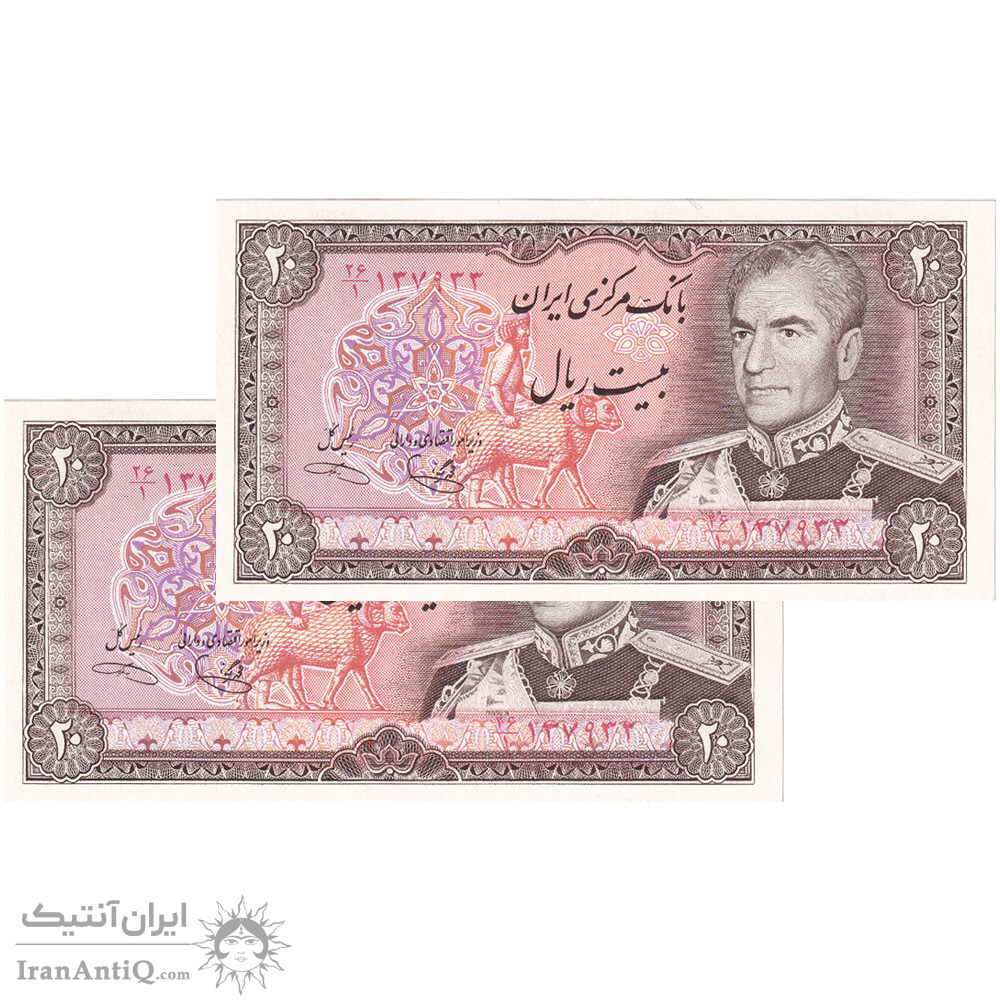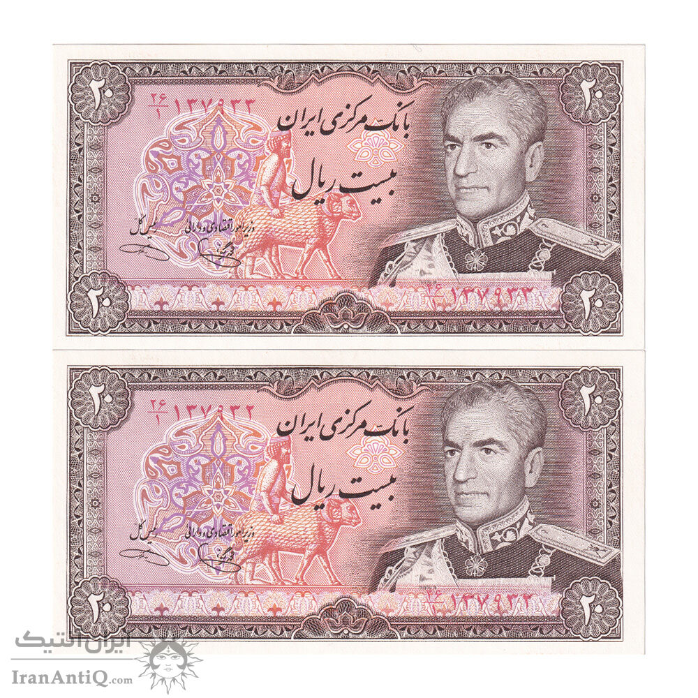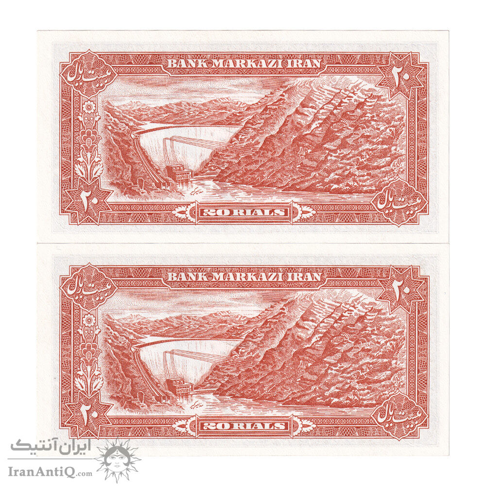 اسکناس 20 ریال (یگانه - خوش کیش) - جفت - UNC63 - محمد رضا شاه