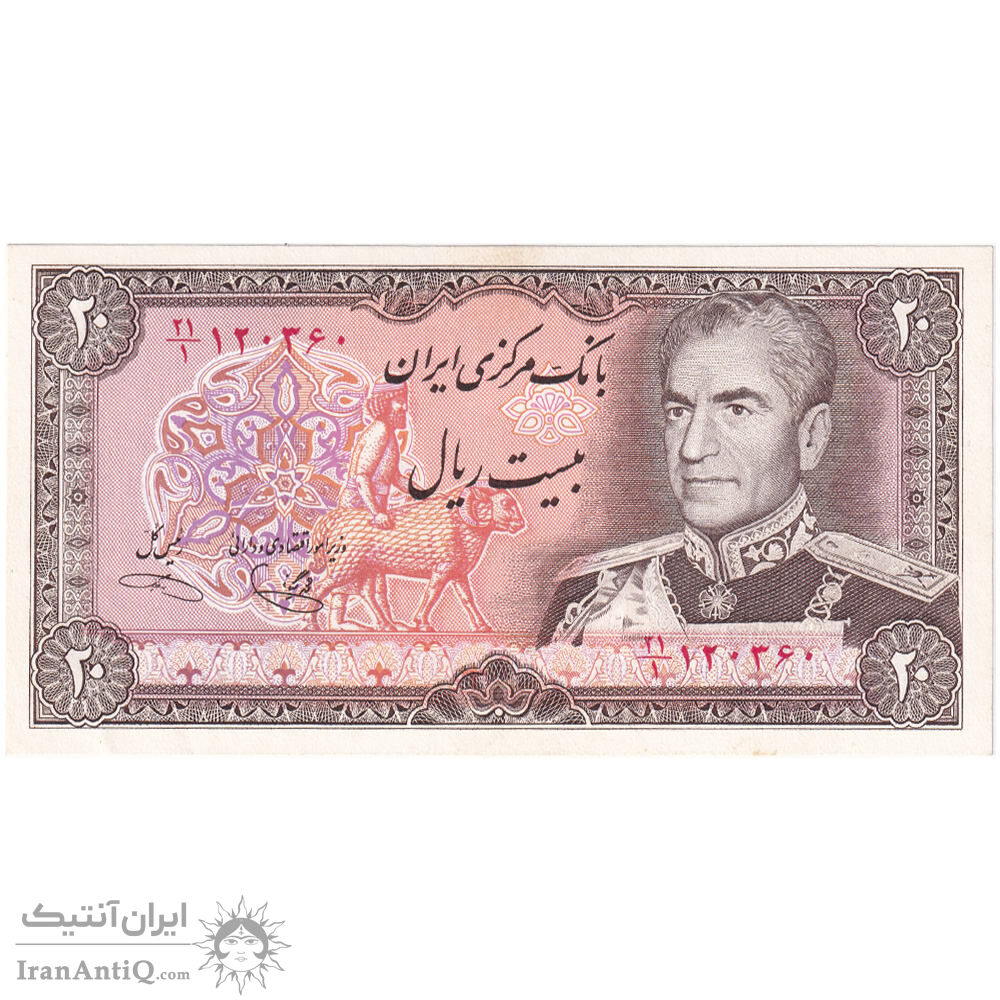 mohammad reza shah 20 rials (yegane - khoshkish) iran banknote - UNC62