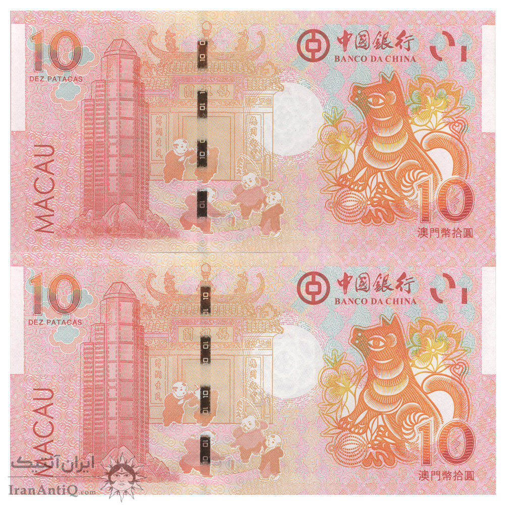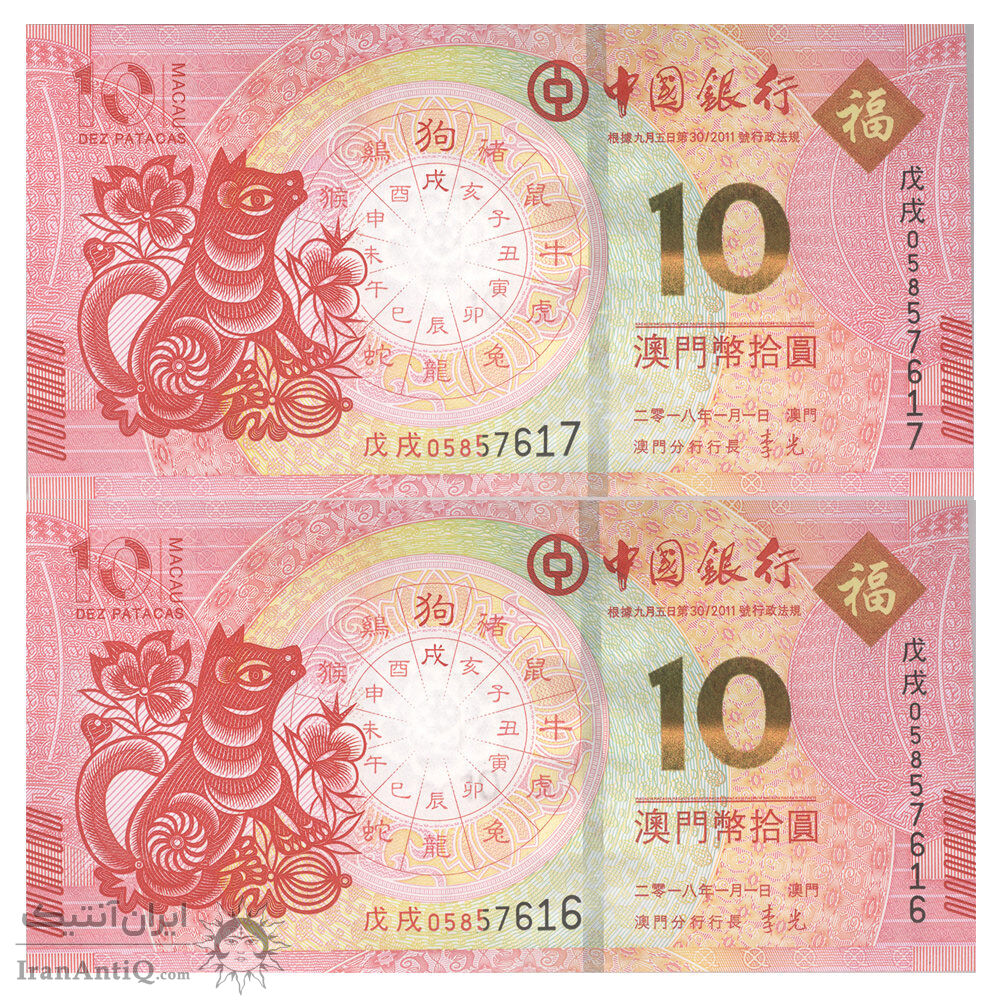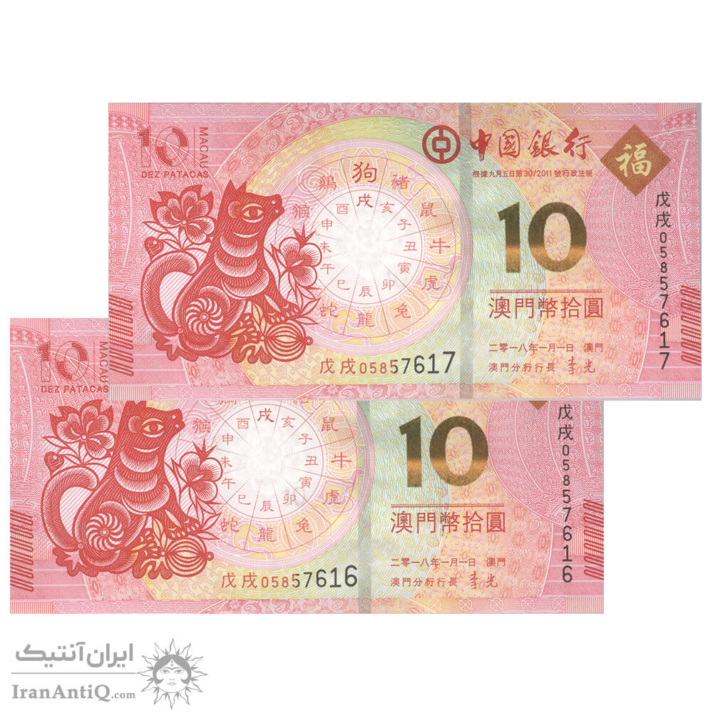 اسکناس 10 پاتاکا 2018 منطقه ویژه اداری - سال سگ؛ بانک مرکزی چین - جفت - UNC64 - چین(ماکائو)