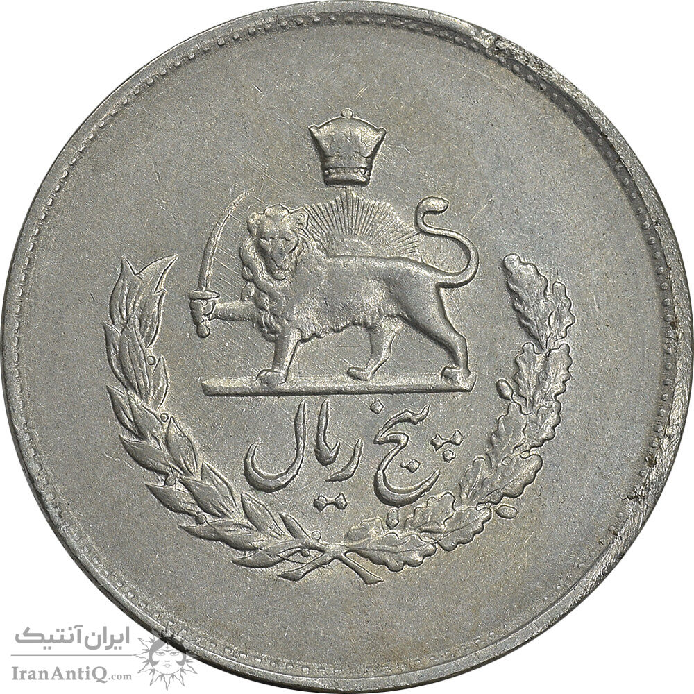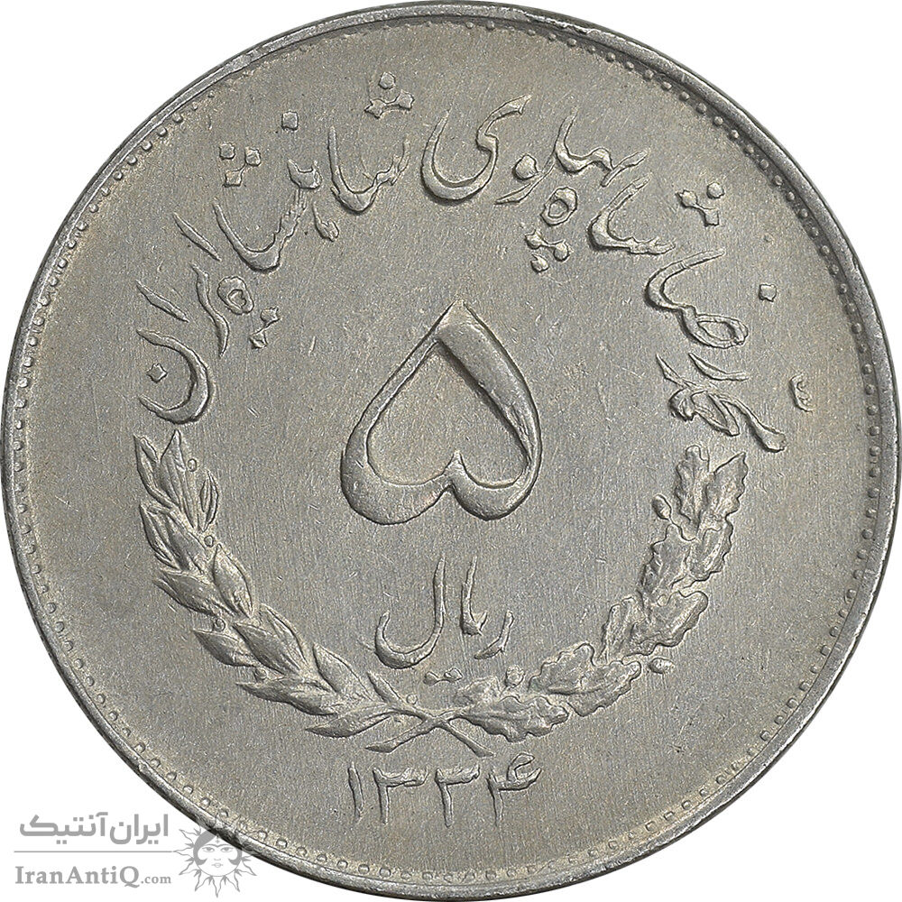سکه 5 ریال 1334 مصدقی - AU55 - محمد رضا شاه