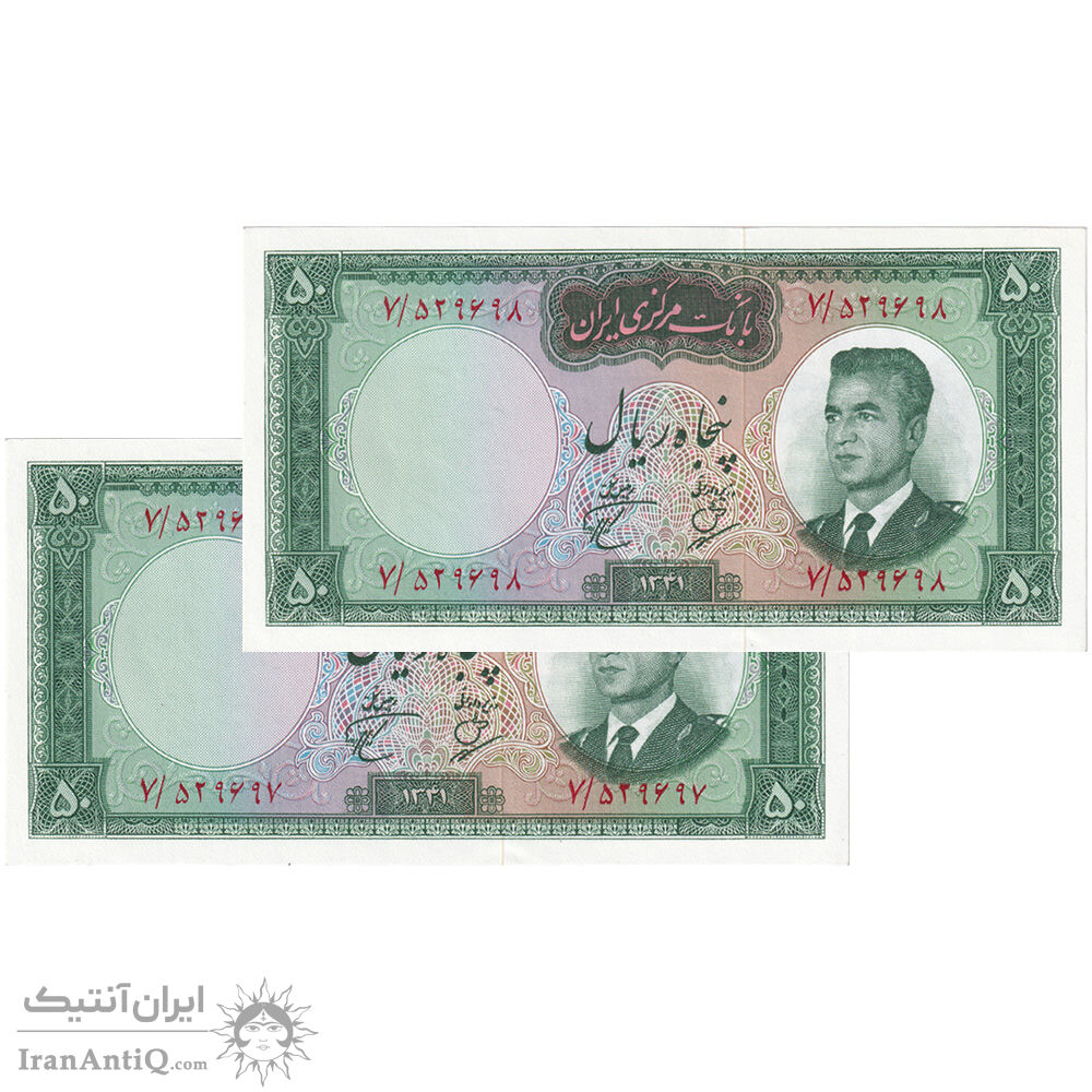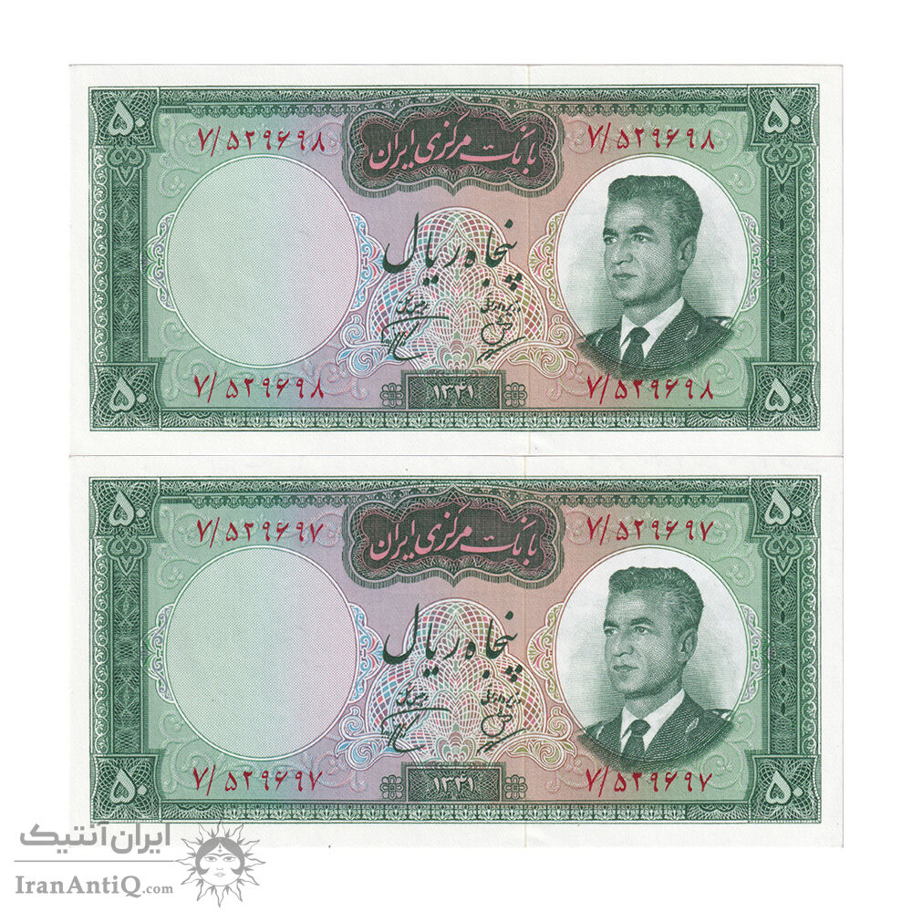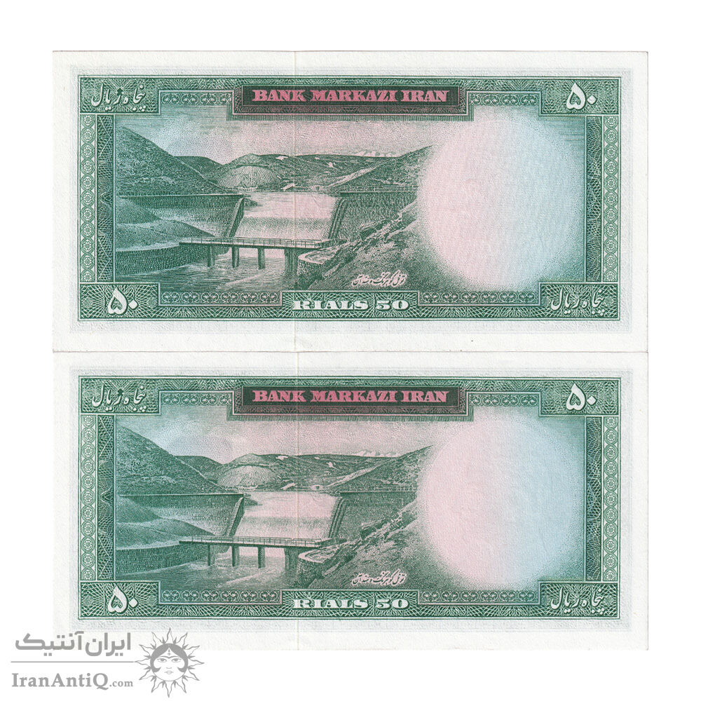 اسکناس 50 ریال 1341 - تاریخ کوچک - جفت - UNC64 - محمد رضا شاه