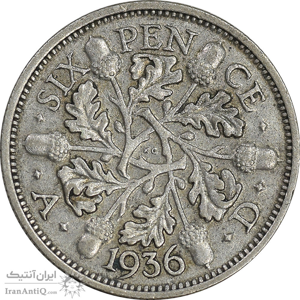 سکه 6 پنس 1936 جرج پنجم - AU50 - انگلستان