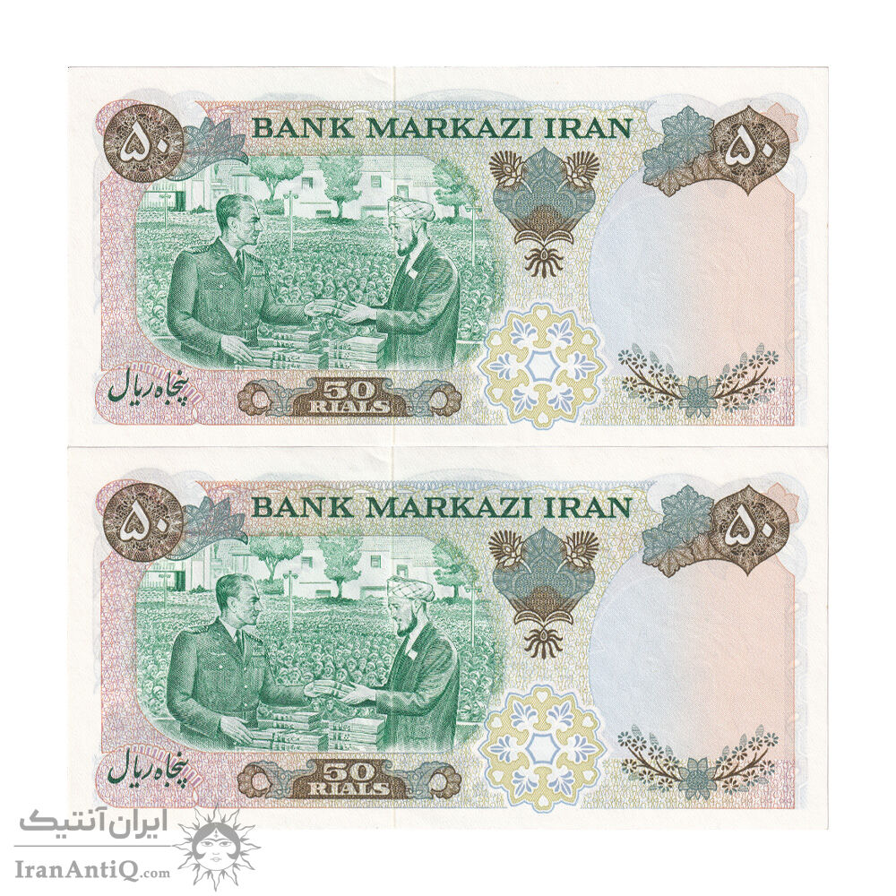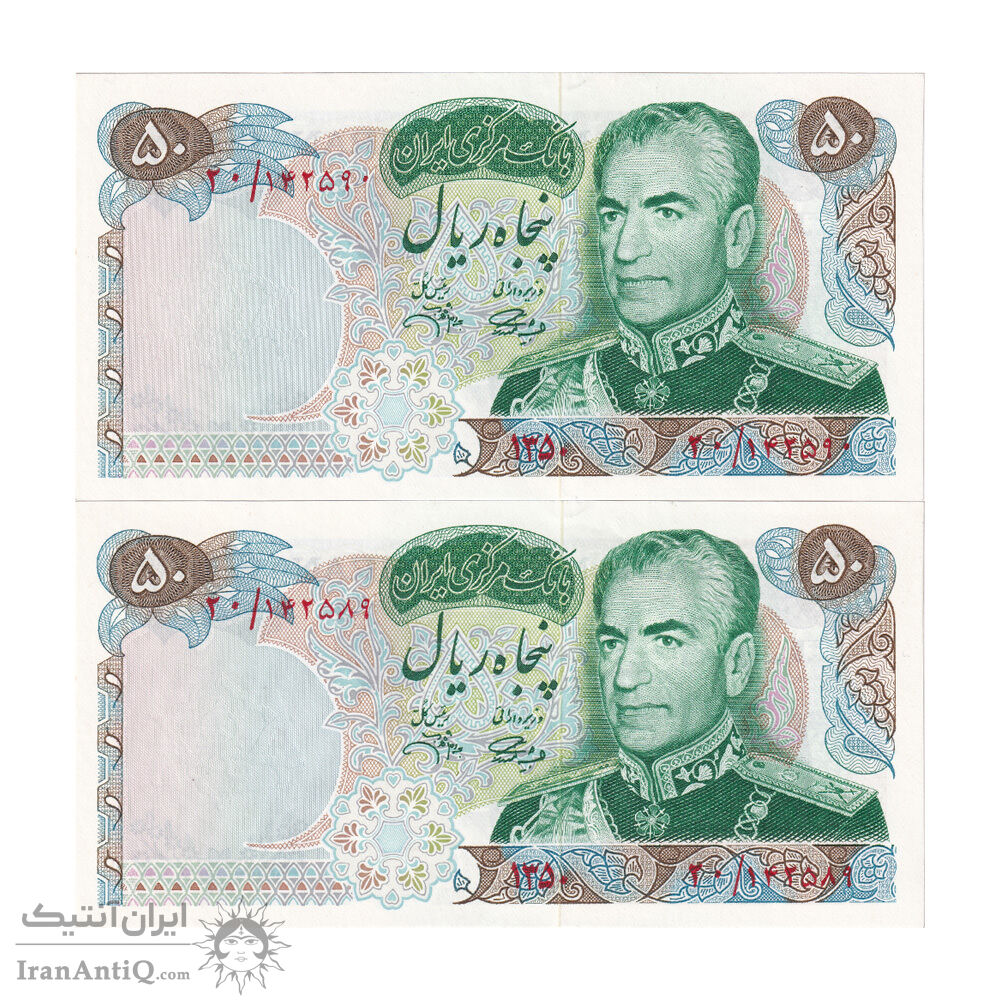 اسکناس 50 ریال 1350 (آموزگار - جهانشاهی) - جفت - UNC63 - محمد رضا شاه