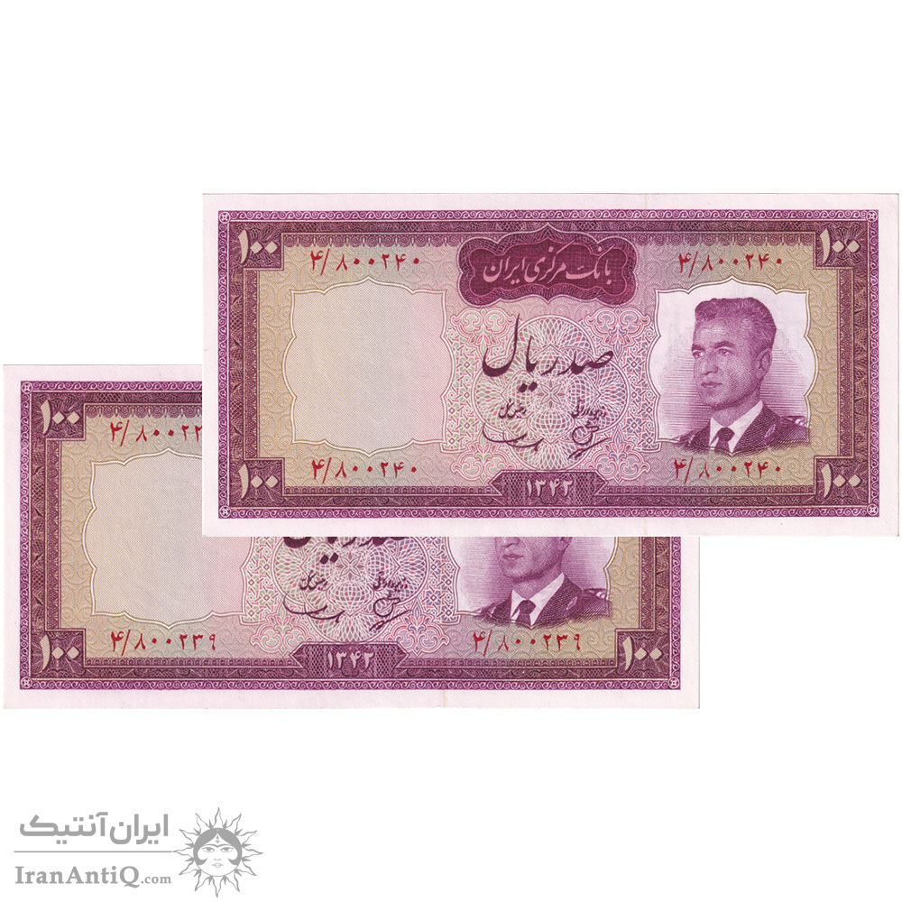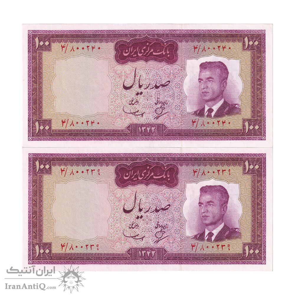 اسکناس 100 ریال 1342 - جفت - UNC64 - محمد رضا شاه