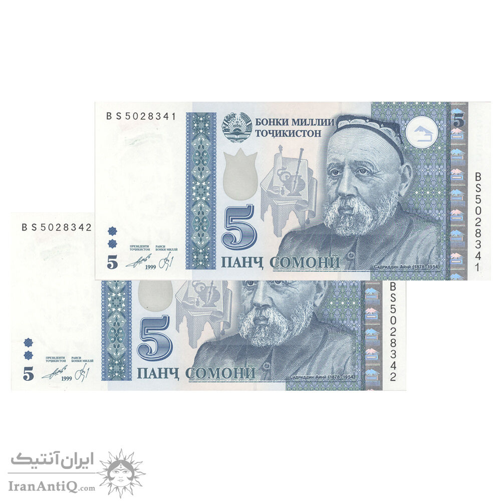 اسکناس 5 سامانی 1999 جمهوری - جفت - UNC65 - تاجیکستان