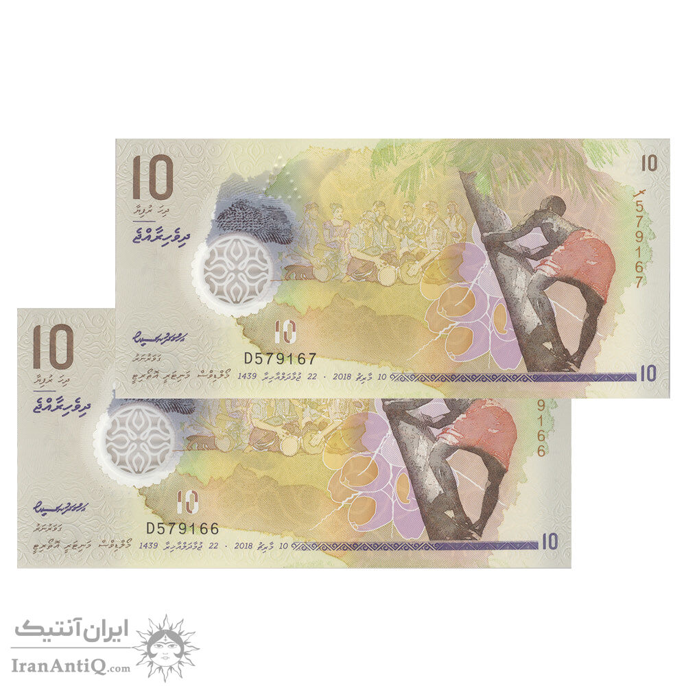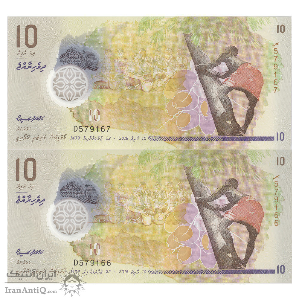 اسکناس 10 روفیه 2018 جمهوری دوم - جفت - UNC66 - مالدیو