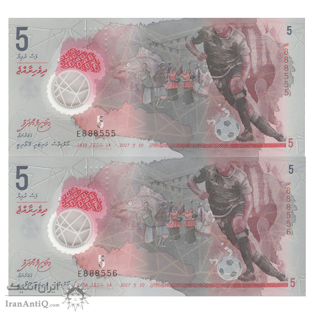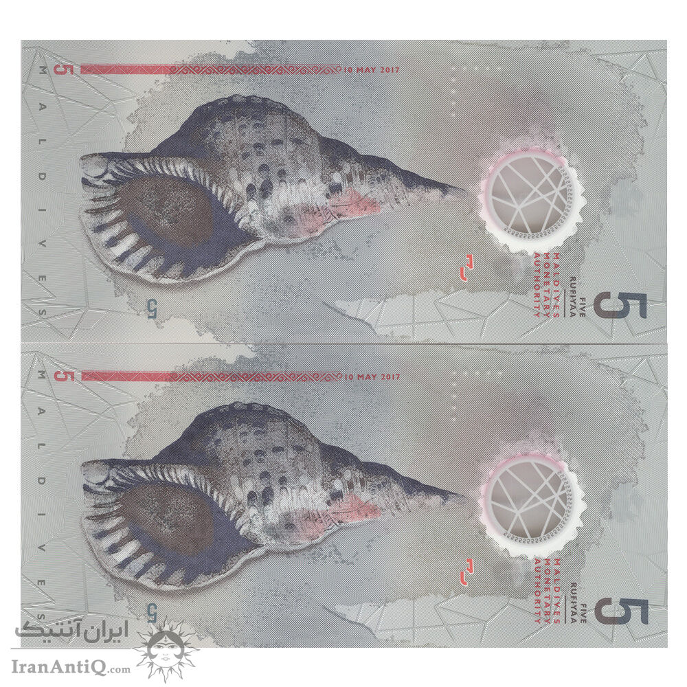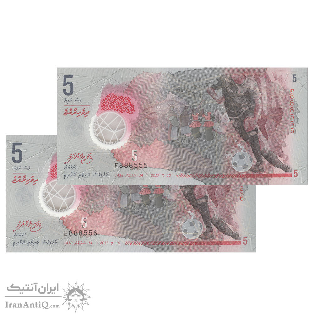 اسکناس 5 روفیه 2017 جمهوری دوم - جفت - UNC66 - مالدیو