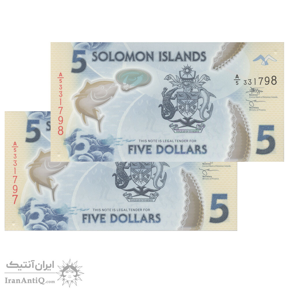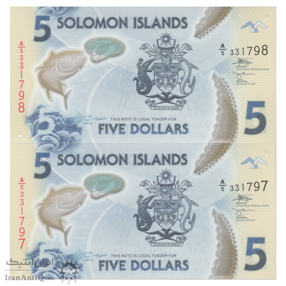 اسکناس 5 دلار بدون تاریخ (2022) الیزابت دوم - Dr. Luke Forau & Hon. Harry Degruit Kuma - جفت - UNC66 - جزایر سلیمان