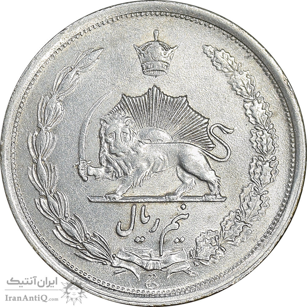 Iran half rial 1312/0 coin - date surcharge - AU58 - reza shah pahlavi
