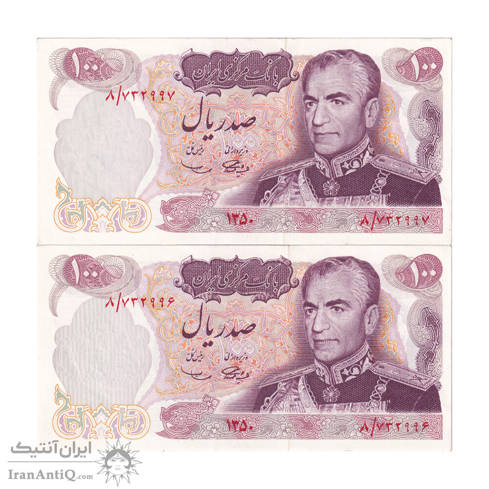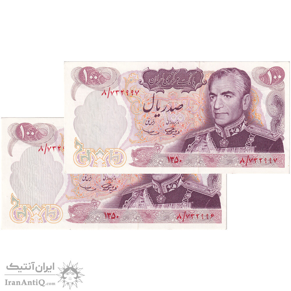 اسکناس 100 ریال 1350 - جفت - UNC60 - محمد رضا شاه