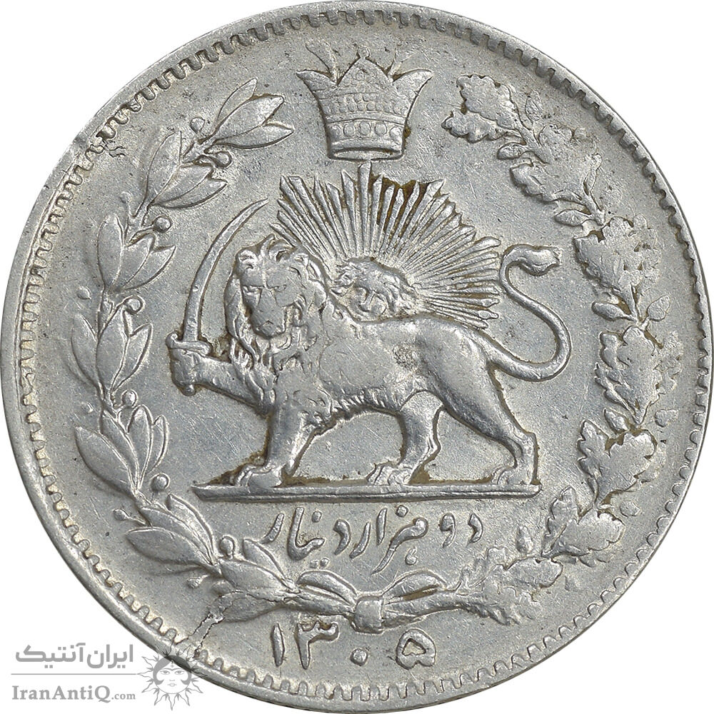 Iran 2000 dinars 1305 coin - AU55 - reza shah pahlavi