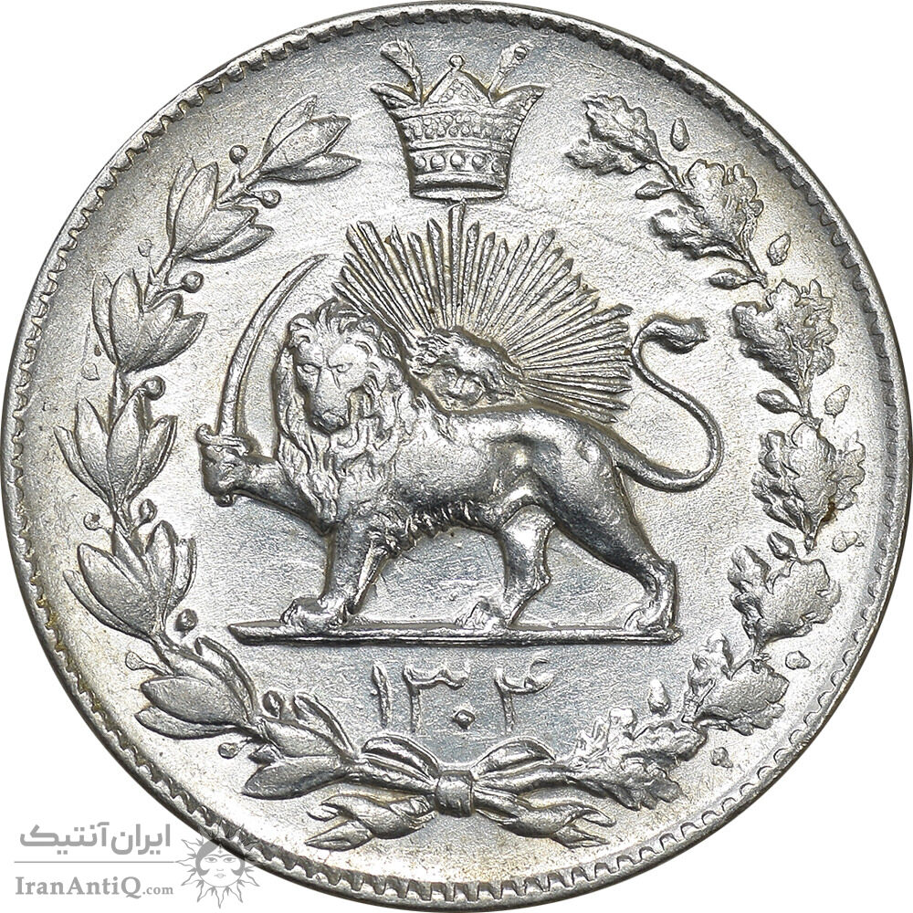سکه 2000 دینار 1304 رایج - AU - رضا شاه